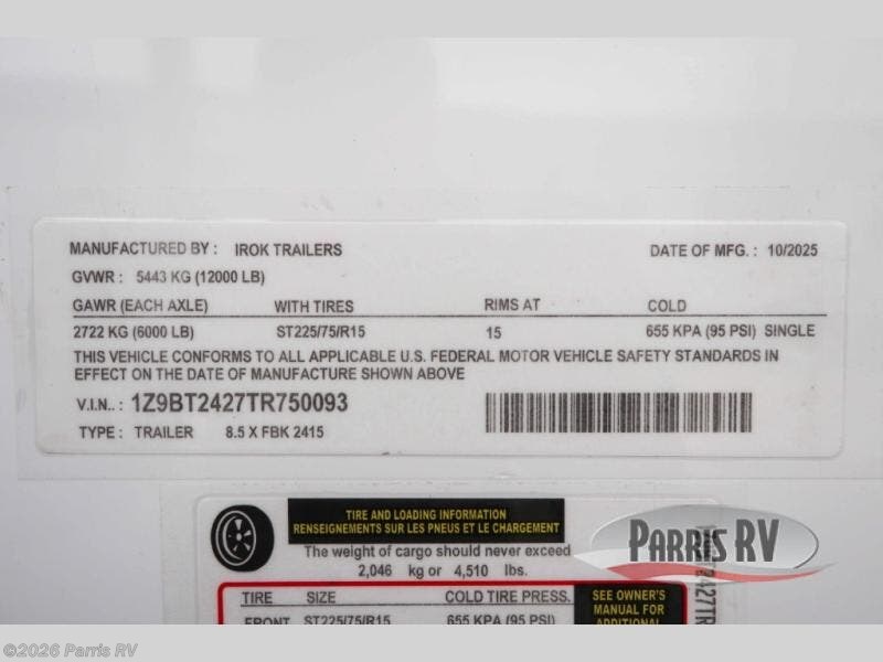 Request More Info on this 2026 Irok Trailers FBK RACE 2415 Offered for sale by Parris RV