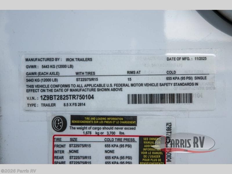 Request More Info on this 2026 Irok Trailers FS Luxe FS 2814 Offered for sale by Parris RV