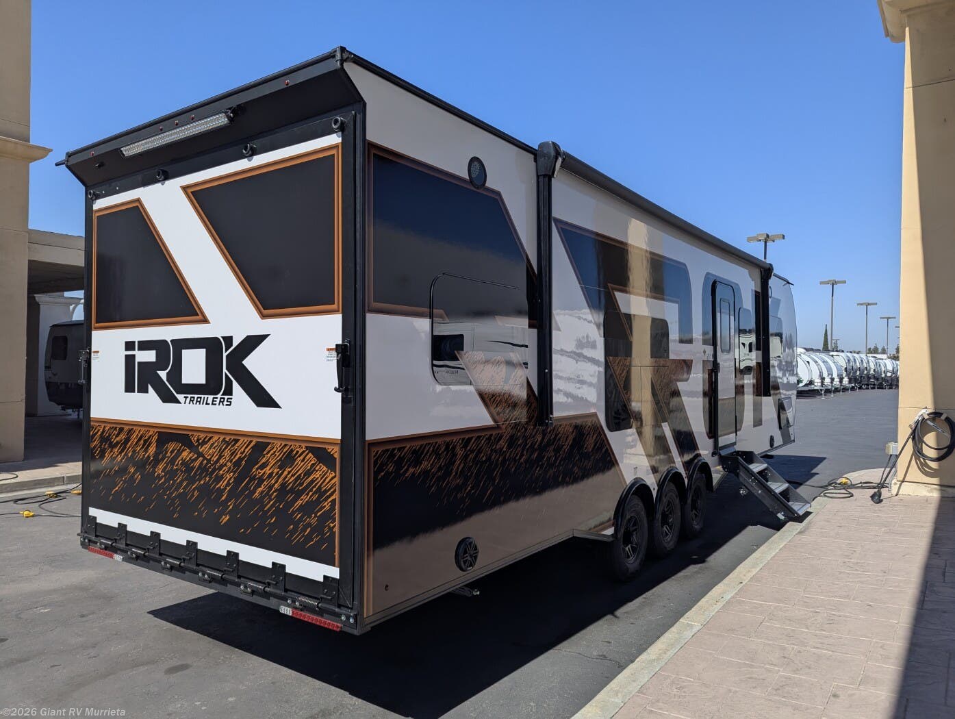 Visit Giant RV in California today to explore the 2026 IROK Trailers IROK 3218RACE and elevate your family adventure with this premium toy hauler travel trailer