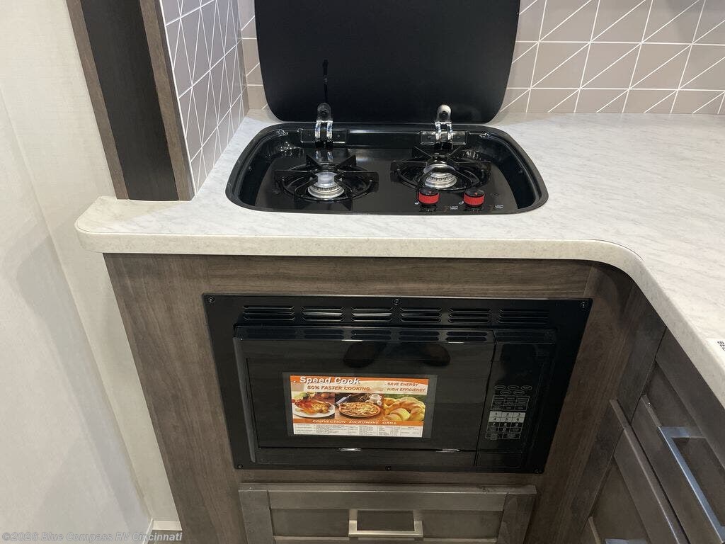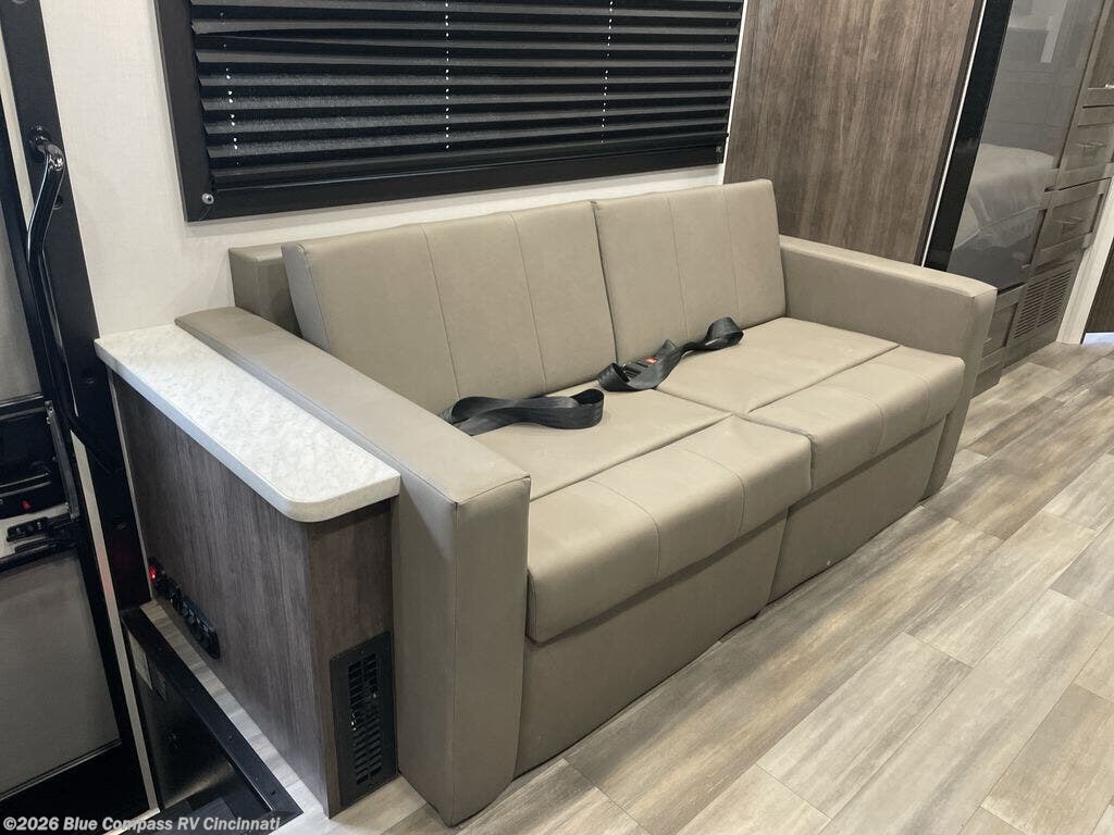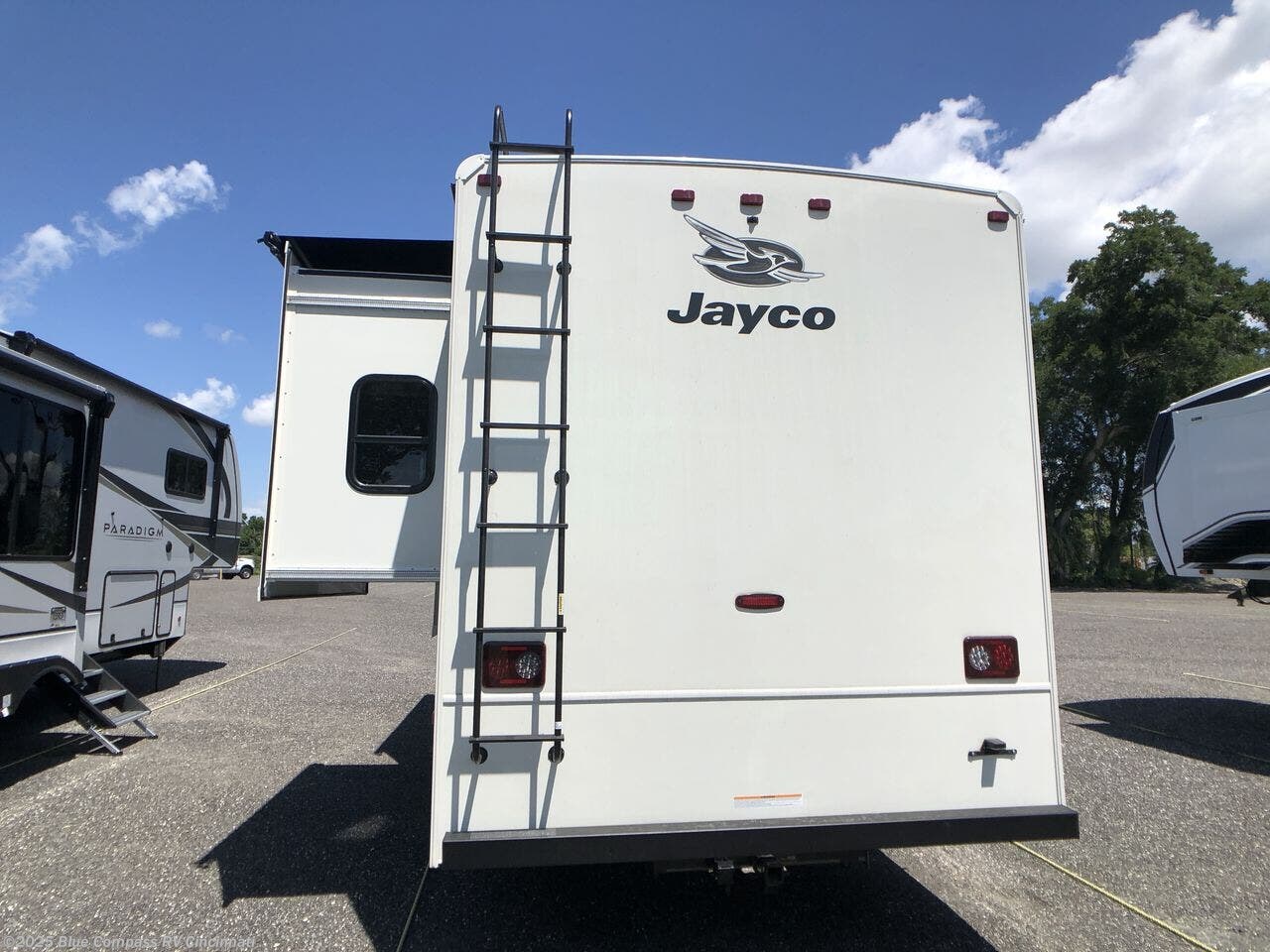 When you enjoy the drive as much as the destination, you know you made the correct choice for your adventures! The driver and passenger seats swivel to create more seating when you are parked, and the Jayco-exclusive, easy operation legless dinette plus jack-knife sofa give everyone a place to relax and visit. You will also find sleeping space for five to six when you utilize the furniture and you choose the drop-down overhead bunk option. The rear corner bedroom gives you a king bed, two wardrobes, and a full bathroom just a few steps away. The kitchen offers full amenities including a countertop extension, and you might like to choose the 15 cu. ft. refrigerator option. Don't forget about the outside entertainment center, and the 39" LED HD Smart TV inside when you want to watch a show, a movie or the big game.
