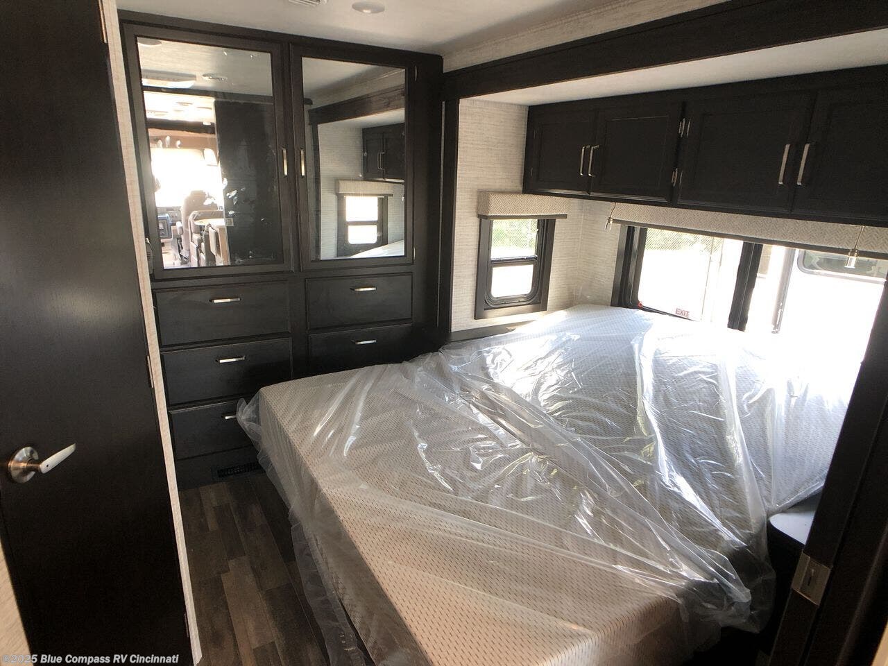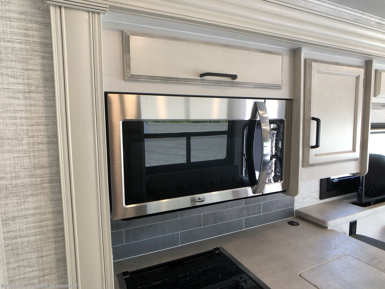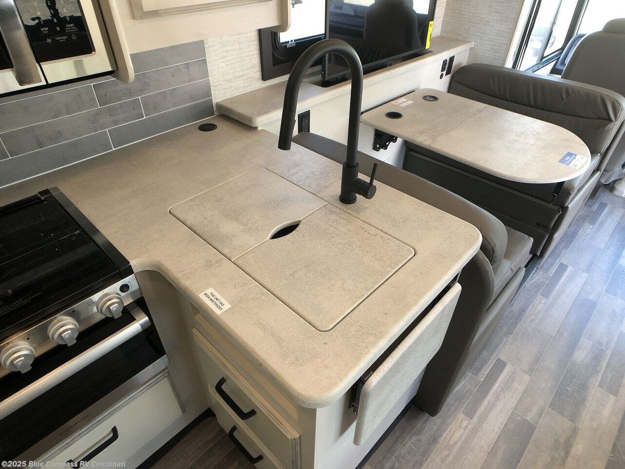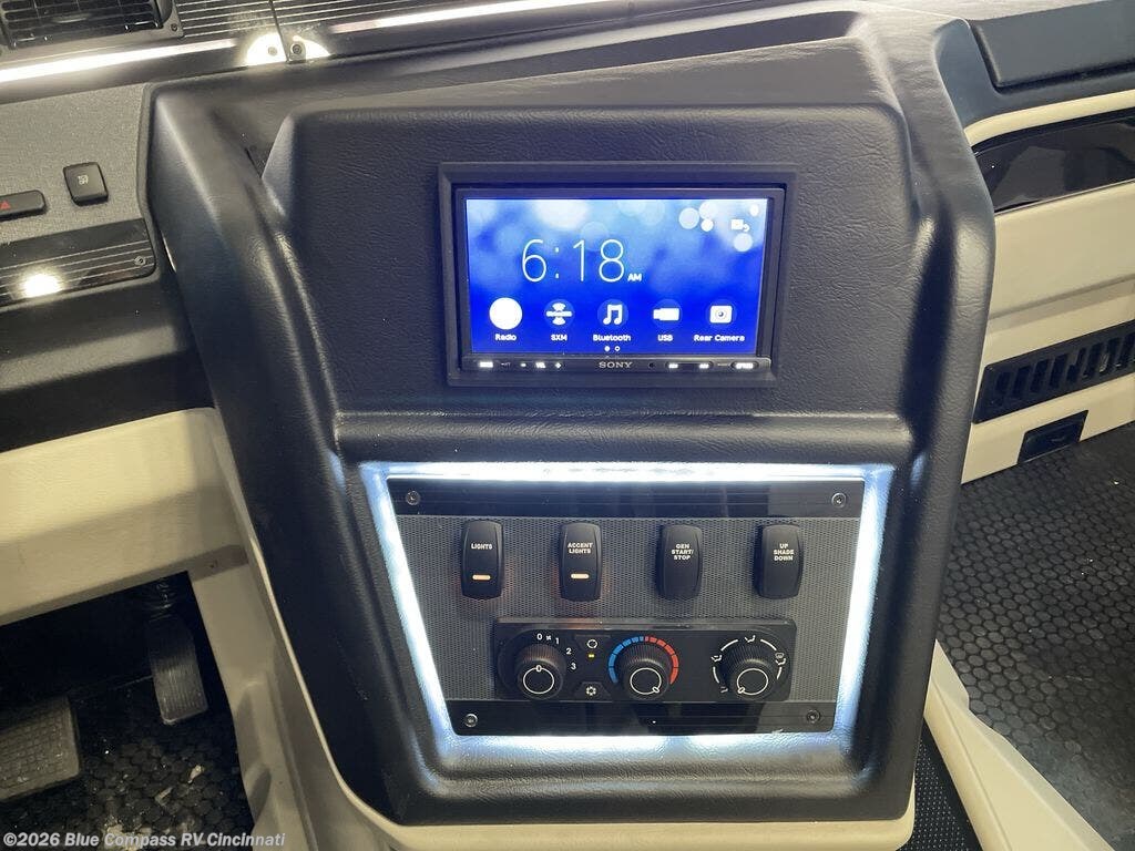 With any Alante Class A gas motorhome by Jayco, the mandatory Customer Value package provides JRide technology with a computer-balanced driveshaft ensuring smooth and efficient power transfer to the wheels, and SACHS shock absorbers offering independent adjustments to the road conditions. There is also a one-piece, seamless, crowned fiberglass roof, and an exterior entertainment center to watch shows and movies. The automatic hydraulic leveling jacks, 120 in. panoramic windshield, 200W solar panel, and the electric-powered entrance step will make traveling that much easier. And the interior equipment includes a Sony infotainment center with Apple CarPlay and Android Auto, a backup and side-view cameras for easy parking, plus a 6-way power driver seat for comfortable and safe driving. You will also love the power front privacy shade with manual side privacy shades, LED-lit hardwood fascia and countertops, a pop-up charging station in the kitchen and a USB port and wireless charging in the nightstands.