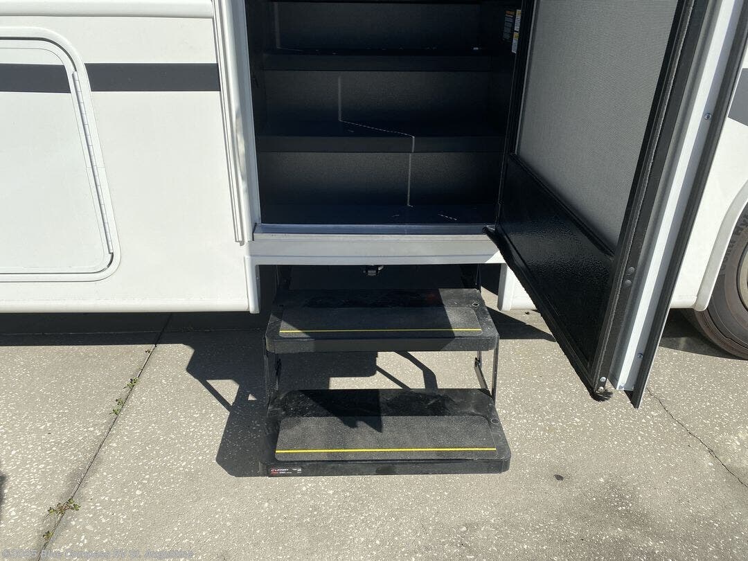 With any Alante Class A gas motorhome by Jayco, the mandatory Customer Value package provides JRide technology with a computer-balanced driveshaft ensuring smooth and efficient power transfer to the wheels, and SACHS shock absorbers offering independent adjustments to the road conditions. There is also a one-piece, seamless, crowned fiberglass roof, and an exterior entertainment center to watch shows and movies. The automatic hydraulic leveling jacks, 120 in. panoramic windshield, 200W solar panel, and the electric-powered entrance step will make traveling that much easier. And the interior equipment includes a Sony infotainment center with Apple CarPlay and Android Auto, a backup and side-view cameras for easy parking, plus a 6-way power driver seat for comfortable and safe driving. You will also love the power front privacy shade with manual side privacy shades, LED-lit hardwood fascia and countertops, a pop-up charging station in the kitchen and a USB port and wireless charging in the nightstands.