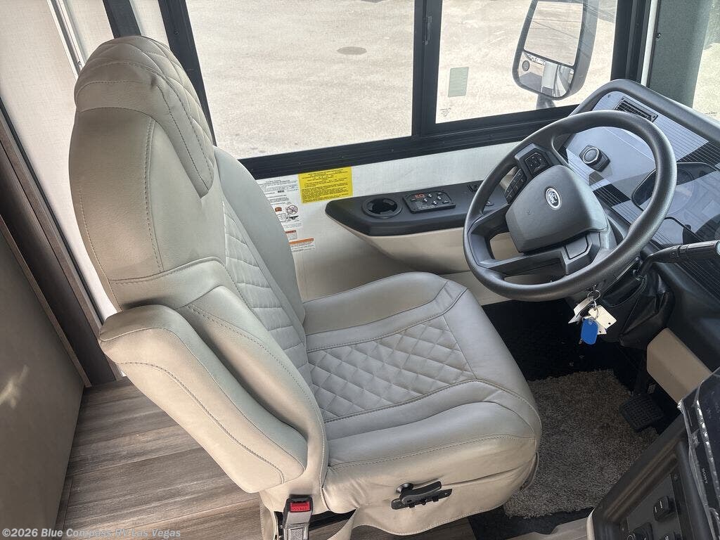 With any Alante Class A gas motorhome by Jayco, the mandatory Customer Value package provides JRide technology with a computer-balanced driveshaft ensuring smooth and efficient power transfer to the wheels, and SACHS shock absorbers offering independent adjustments to the road conditions. There is also a one-piece, seamless, crowned fiberglass roof, and an exterior entertainment center to watch shows and movies. The automatic hydraulic leveling jacks, 120 in. panoramic windshield, 200W solar panel, and the electric-powered entrance step will make traveling that much easier. And the interior equipment includes a Sony infotainment center with Apple CarPlay and Android Auto, a backup and side-view cameras for easy parking, plus a 6-way power driver seat for comfortable and safe driving. You will also love the power front privacy shade with manual side privacy shades, LED-lit hardwood fascia and countertops, a pop-up charging station in the kitchen and a USB port and wireless charging in the nightstands.