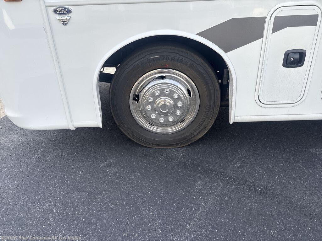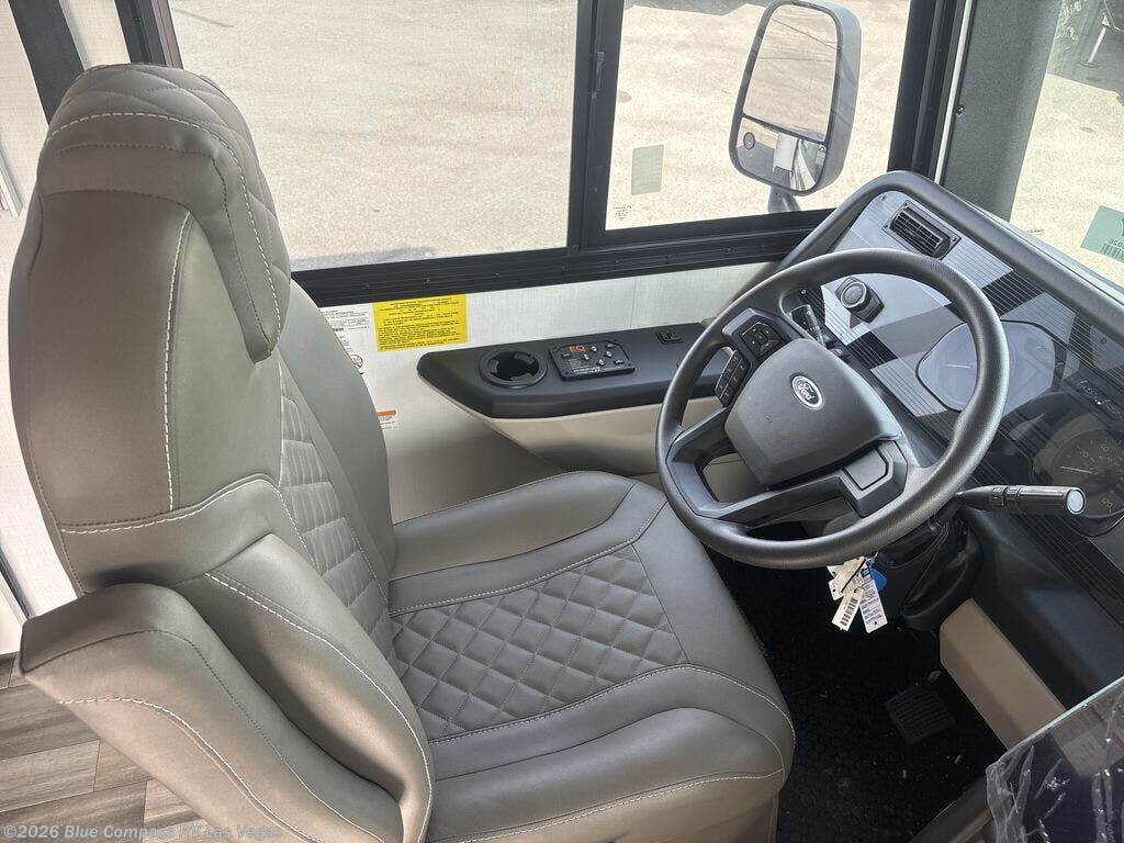 With any Alante Class A gas motorhome by Jayco, the mandatory Customer Value package provides JRide technology with a computer-balanced driveshaft ensuring smooth and efficient power transfer to the wheels, and SACHS shock absorbers offering independent adjustments to the road conditions. There is also a one-piece, seamless, crowned fiberglass roof, and an exterior entertainment center to watch shows and movies. The automatic hydraulic leveling jacks, 120 in. panoramic windshield, 200W solar panel, and the electric-powered entrance step will make traveling that much easier. And the interior equipment includes a Sony infotainment center with Apple CarPlay and Android Auto, a backup and side-view cameras for easy parking, plus a 6-way power driver seat for comfortable and safe driving. You will also love the power front privacy shade with manual side privacy shades, LED-lit hardwood fascia and countertops, a pop-up charging station in the kitchen and a USB port and wireless charging in the nightstands.