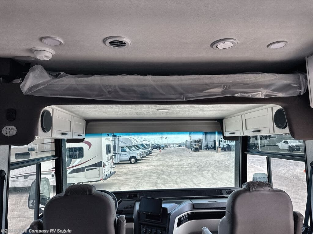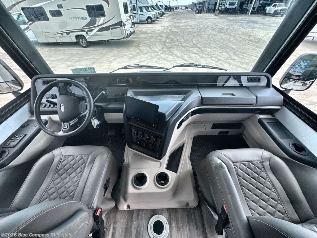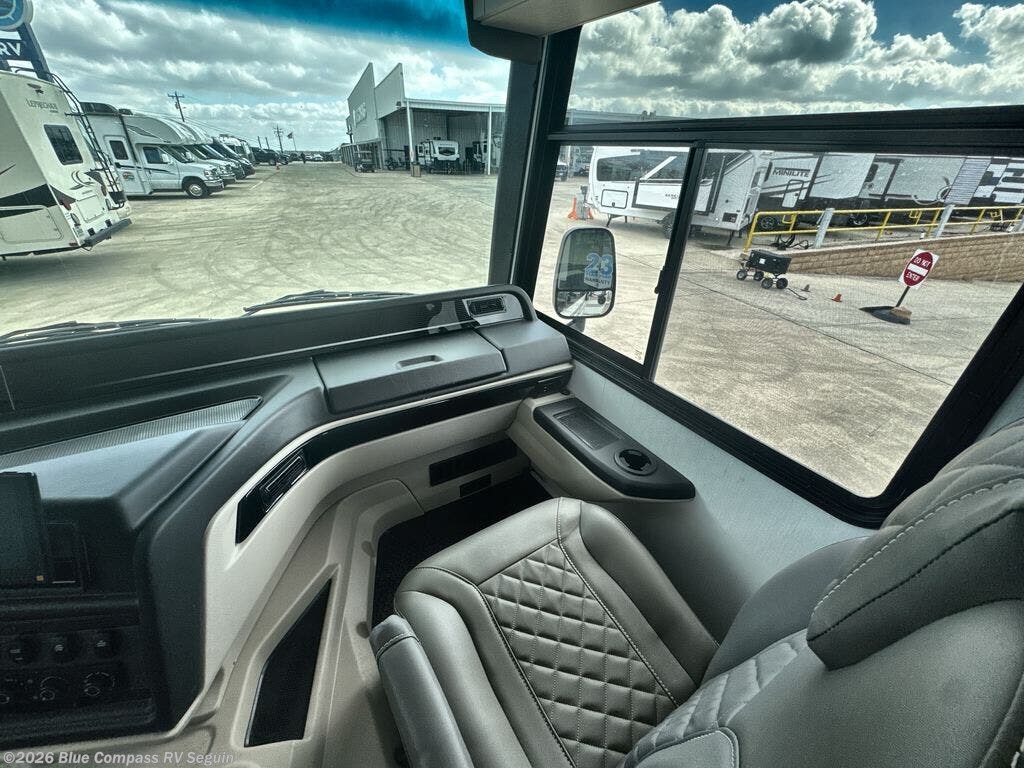 With any Alante Class A gas motorhome by Jayco, the mandatory Customer Value package provides JRide technology with a computer-balanced driveshaft ensuring smooth and efficient power transfer to the wheels, and SACHS shock absorbers offering independent adjustments to the road conditions. There is also a one-piece, seamless, crowned fiberglass roof, and an exterior entertainment center to watch shows and movies. The automatic hydraulic leveling jacks, 120 in. panoramic windshield, 200W solar panel, and the electric-powered entrance step will make traveling that much easier. And the interior equipment includes a Sony infotainment center with Apple CarPlay and Android Auto, a backup and side-view cameras for easy parking, plus a 6-way power driver seat for comfortable and safe driving. You will also love the power front privacy shade with manual side privacy shades, LED-lit hardwood fascia and countertops, a pop-up charging station in the kitchen and a USB port and wireless charging in the nightstands.