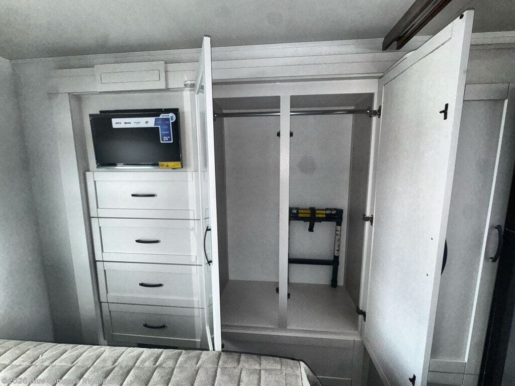 Travel to see new places and enjoy interior comforts as well as outdoor entertainment with this coach! After easily setting up the 23' electric awning you can relax and unwind while taking in the scenery or watching the the exterior LED HD Smart TV. The chef can utilize the outside kitchen or the full kitchen amenities inside such as a 10 cu. ft. refrigerator, the all-in-one cooktop and oven, plus a residential-size microwave. There is even a pop-up charging center. Enjoy privacy in the rear bedroom while you sleep on the walk-around queen bed, and add the TV option if you like. You will find seating in the main area on the Jayco-exclusive easy-operation legless dinette table and the jack-knife sofa, or choose the theater seating option. The cockpit table also gives you another surface to place your things while you sit in the driver and passenger seats that swivel. If you're needing additional sleeping space, just choose the drop-down overhead bunk option!