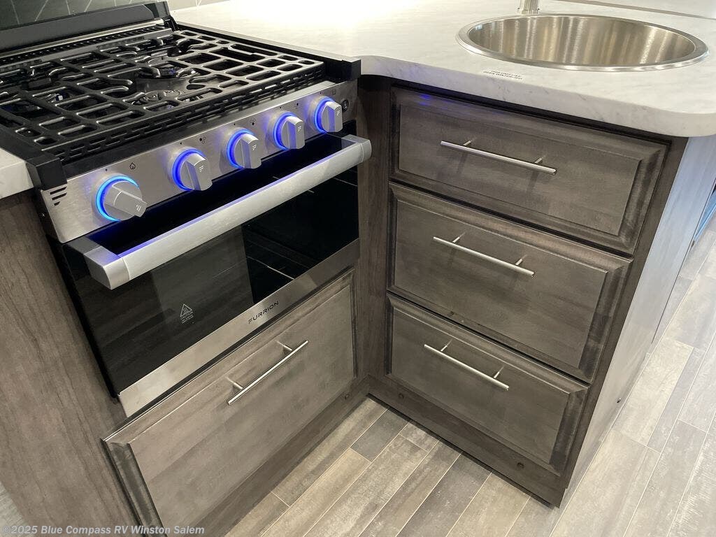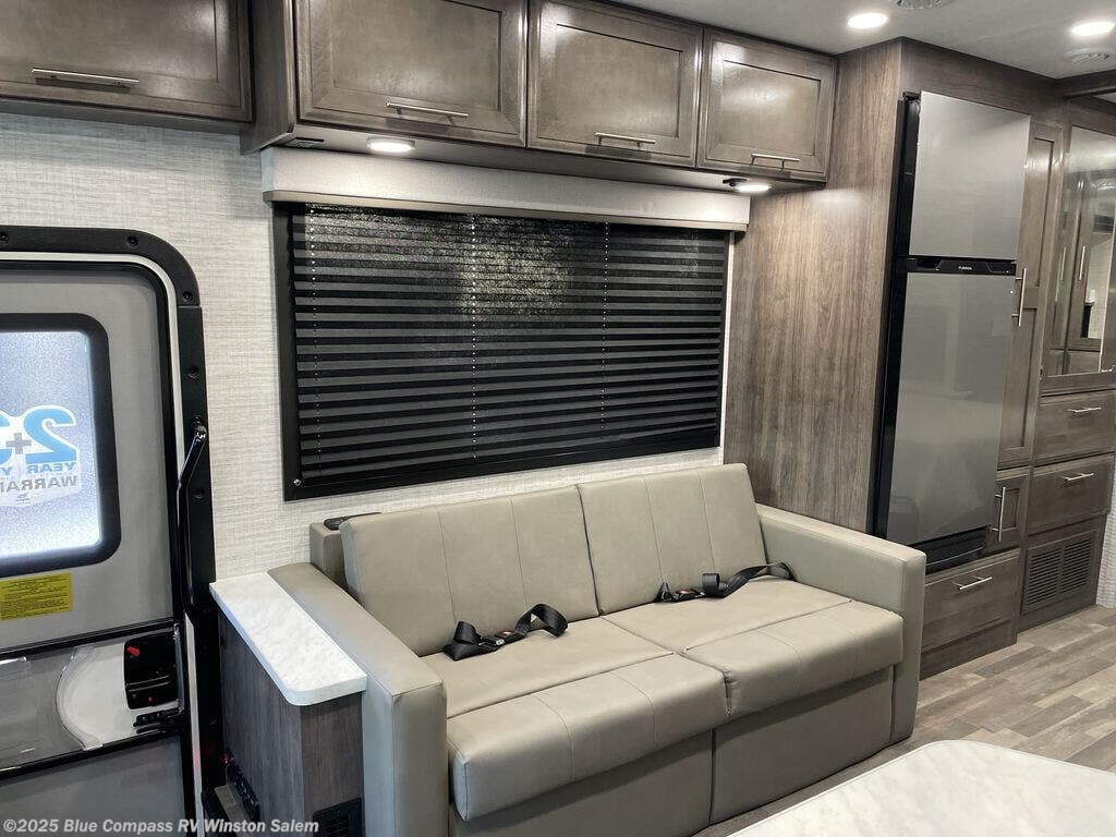 When you enjoy the drive as much as the destination, you know you made the correct choice for your adventures! The driver and passenger seats swivel to create more seating when you are parked, and the Jayco-exclusive, easy operation legless dinette table plus jack-knife sofa give everyone a place to relax and visit. You will also find sleeping space for five to six when you utilize the furniture and you choose the drop-down overhead bunk option. The rear corner bedroom gives you a king bed, two wardrobes, and a full bathroom just a few steps away. The kitchen offers full amenities including a two burner cooktop, a convection microwave, and a 10 cu. ft. 12V refrigerator. This unit also includes a 39" LED HD Smart TV in the living area to enjoy movie nights with popcorn!