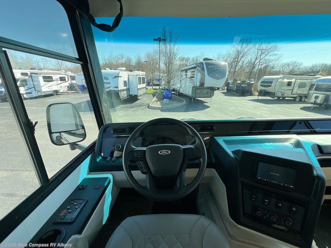 The Alante SE by Jayco provides an affordable choice for those who want to enter the Class A gas market! The durable construction includes StrongholdVBL roof, floor, and sidewalls plus bead-foam insulation and a one-piece, seamless fiberglass front cap. There are lockable pass-through storage compartments outside, along with an exterior utility center, a 4,000W generator, and solar prep for off-grid capabilities. The interior of this coach features hardwood cabinet doors and drawer fronts, decorative kitchen backsplash, and a 7' interior height for more space to stand up and move about. You will also appreciate the Customer Value Package that features the JRide handling package, Sony infotainment center, backup and side-view cameras, and more stand-out features!