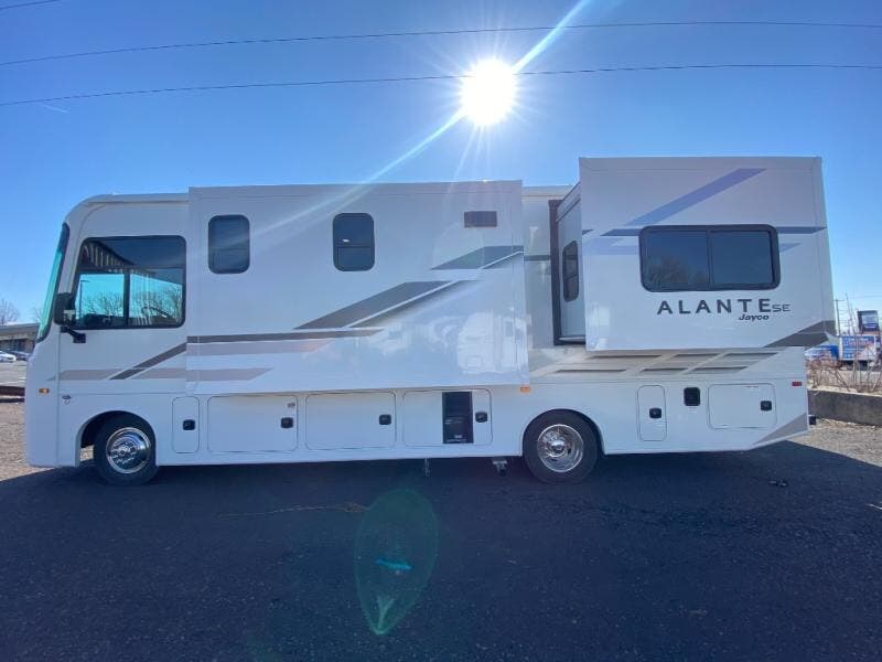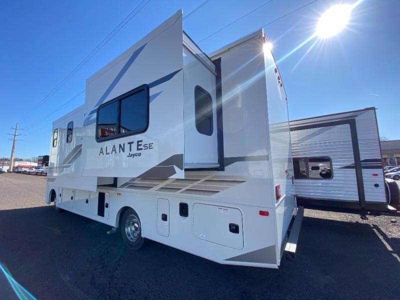 The Alante SE by Jayco provides an affordable choice for those who want to enter the Class A gas market! The durable construction includes StrongholdVBL roof, floor, and sidewalls plus bead-foam insulation and a one-piece, seamless fiberglass front cap. There are lockable pass-through storage compartments outside, along with an exterior utility center, a 4,000W generator, and solar prep for off-grid capabilities. The interior of this coach features hardwood cabinet doors and drawer fronts, decorative kitchen backsplash, and a 7' interior height for more space to stand up and move about. You will also appreciate the Customer Value Package that features the JRide handling package, Sony infotainment center, backup and side-view cameras, and more stand-out features!