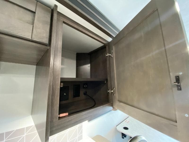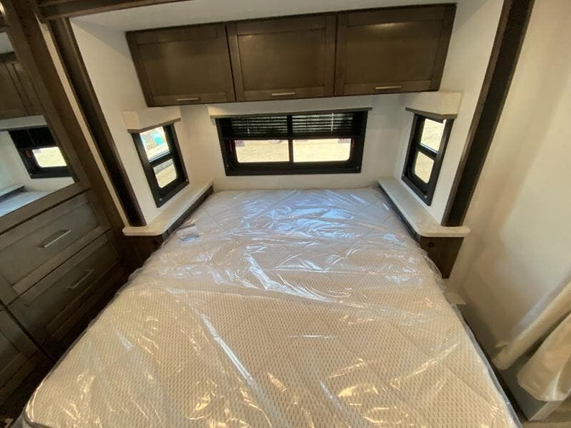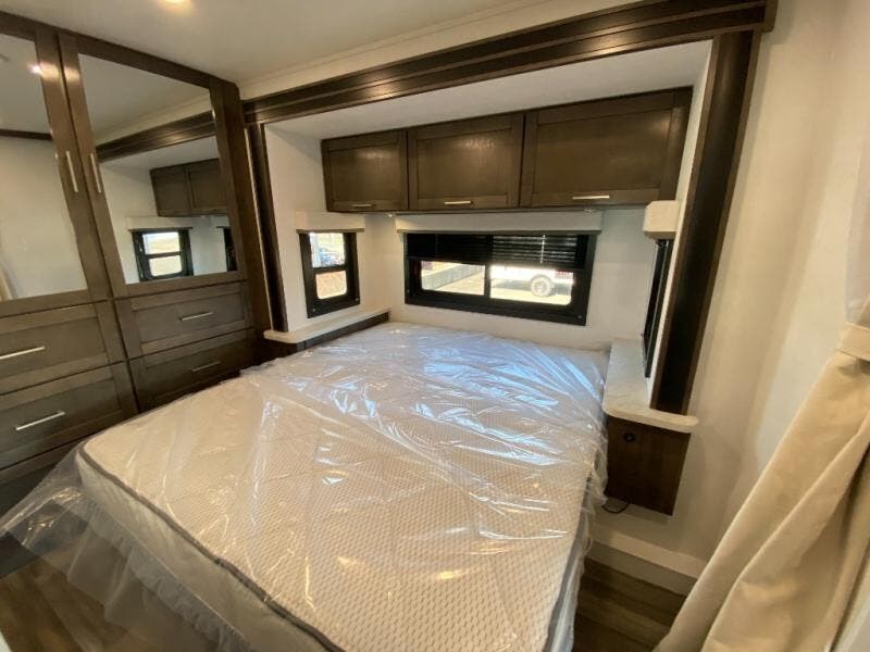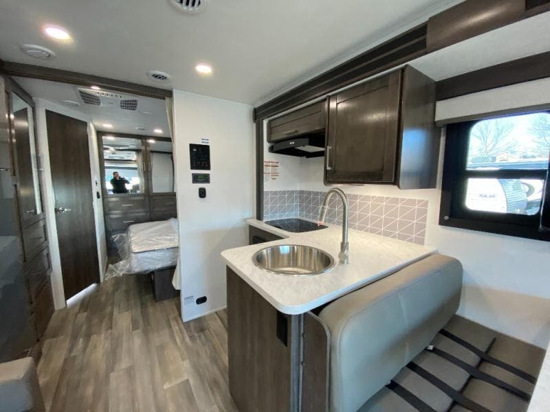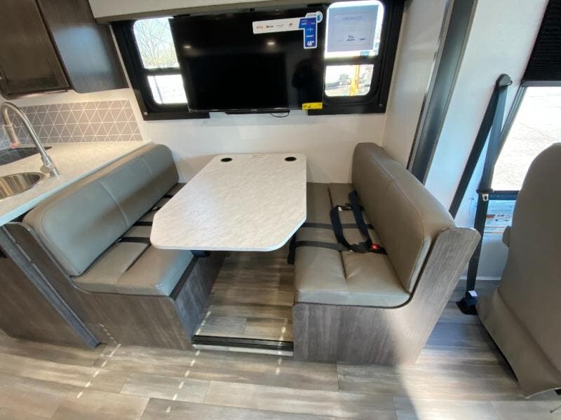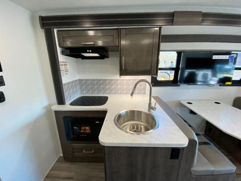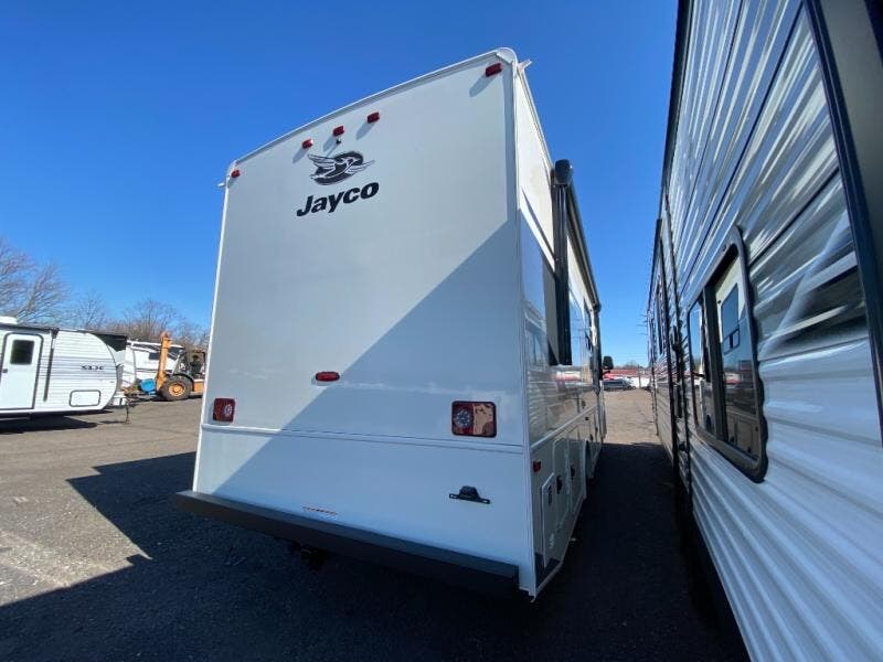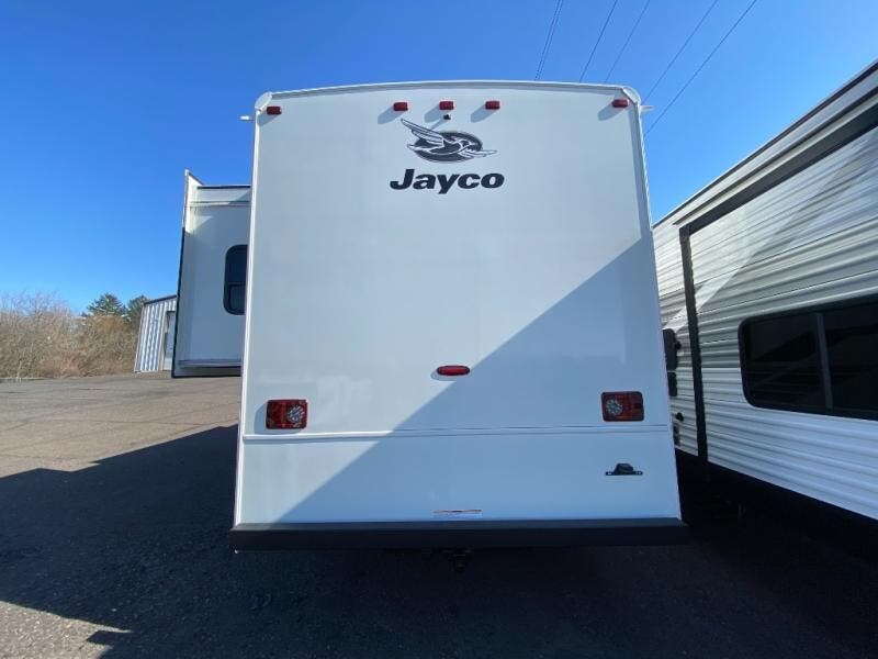 When you enjoy the drive as much as the destination, you know you made the correct choice for your adventures! The driver and passenger seats swivel to create more seating when you are parked, and the Jayco-exclusive, easy operation legless dinette table plus jack-knife sofa give everyone a place to relax and visit. You will also find sleeping space for five to six when you utilize the furniture and you choose the drop-down overhead bunk option. The rear corner bedroom gives you a king bed, two wardrobes, and a full bathroom just a few steps away. The kitchen offers full amenities including a two burner cooktop, a convection microwave, and a 10 cu. ft. 12V refrigerator. This unit also includes a 39" LED HD Smart TV in the living area to enjoy movie nights with popcorn!