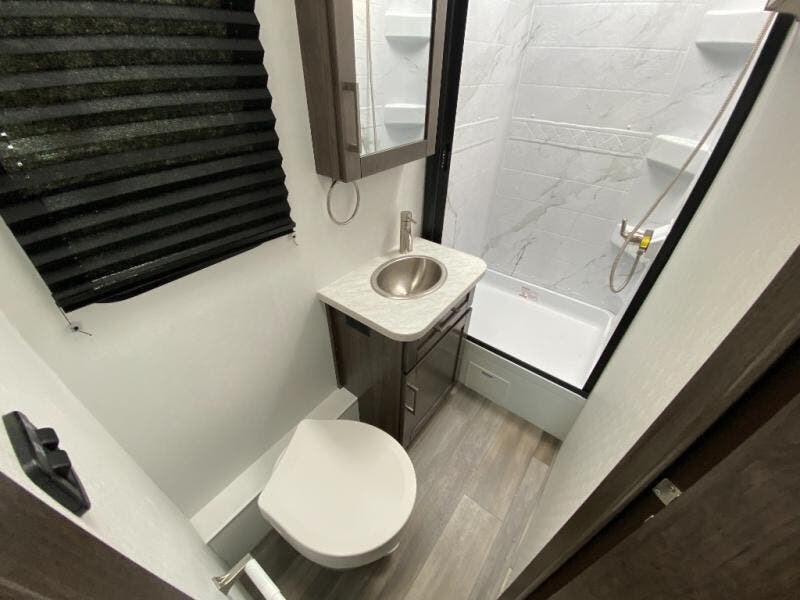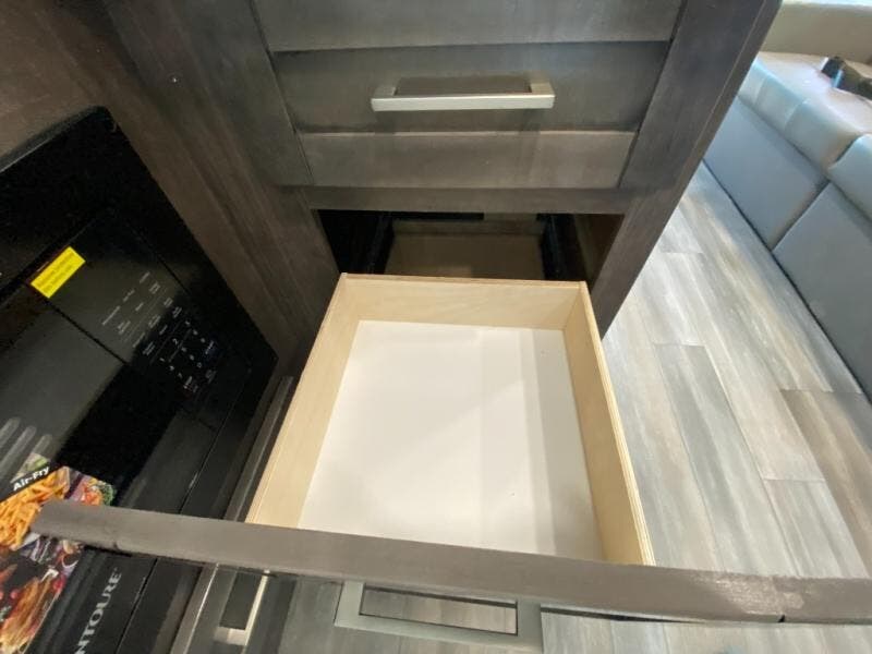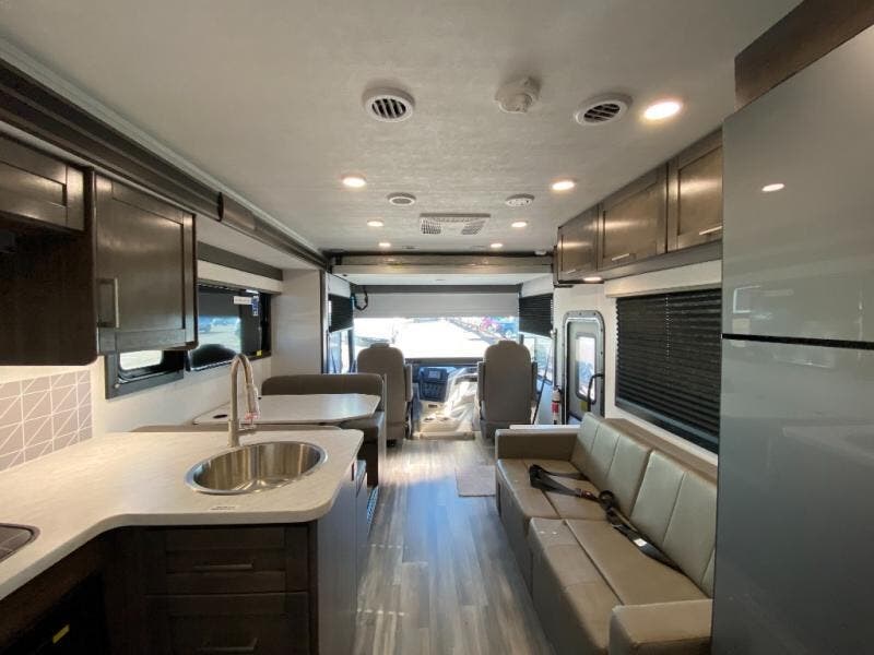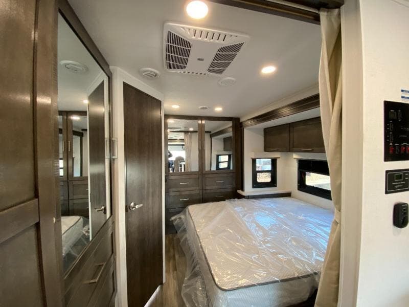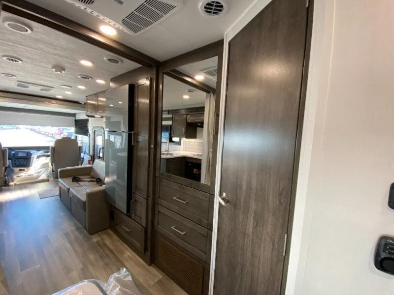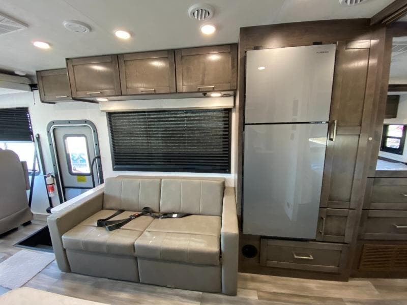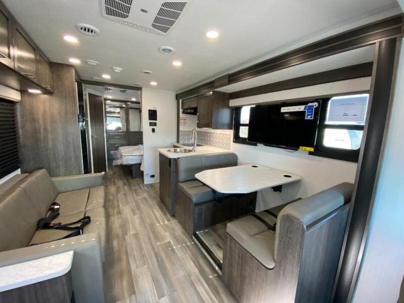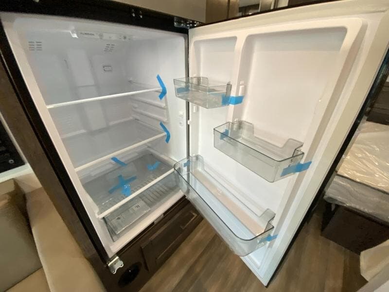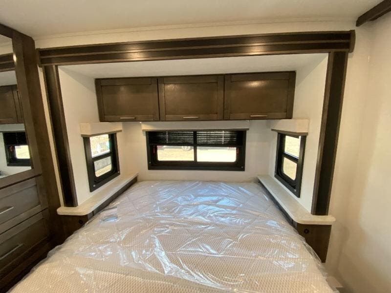 When you enjoy the drive as much as the destination, you know you made the correct choice for your adventures! The driver and passenger seats swivel to create more seating when you are parked, and the Jayco-exclusive, easy operation legless dinette table plus jack-knife sofa give everyone a place to relax and visit. You will also find sleeping space for five to six when you utilize the furniture and you choose the drop-down overhead bunk option. The rear corner bedroom gives you a king bed, two wardrobes, and a full bathroom just a few steps away. The kitchen offers full amenities including a two burner cooktop, a convection microwave, and a 10 cu. ft. 12V refrigerator. This unit also includes a 39" LED HD Smart TV in the living area to enjoy movie nights with popcorn!