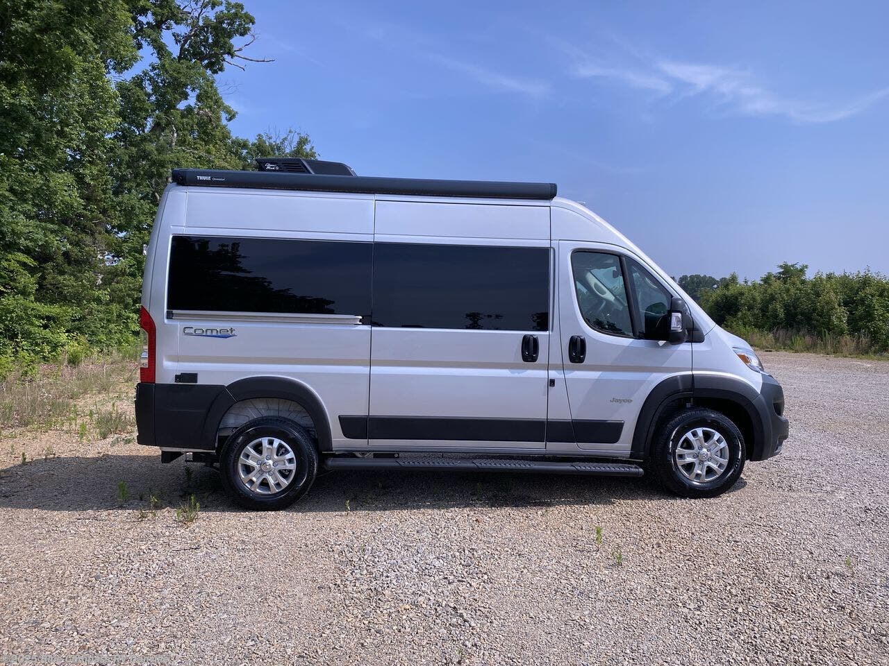 The small and nimble Comet Class B gas motorhome by Jayco is ready for adventure when you are! You'll appreciate the RAM ProMaster 1500 cargo van chassis for a strong and durable foundation, and the 17' 10" overall length means you can easily squeeze into parking spots even in the big city. There are added safety features for your peace of mind, like the LaneSense lane departure warning, drowsy driver detection, and forward collision warning with active braking. An Aqua-Hot GEN-1 hydronic water and heating system will provide hot water and heat when you need it, and the Winegard Connect 2.0 4G/Wi-Fi/digital TV antenna will help keep you connected as you're away from home. You'll be surprised by the interior comforts and functionality found in this compact camper van, including a convertible sofa/bed, residential vinyl flooring, swivel seats, and an adjustable table with multiple mounts to name a few!