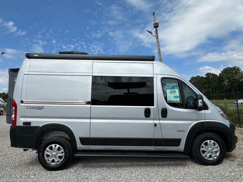 The small and nimble Comet Class B gas motorhome by Jayco is ready for adventure when you are! You'll appreciate the RAM ProMaster 1500 cargo van chassis for a strong and durable foundation, and the 17' 10" overall length means you can easily squeeze into parking spots even in the big city. There are added safety features for your peace of mind, like the LaneSense lane departure warning, drowsy driver detection, and forward collision warning with active braking. An Aqua-Hot GEN-1 hydronic water and heating system will provide hot water and heat when you need it, and the Winegard Connect 2.0 4G/Wi-Fi/digital TV antenna will help keep you connected as you're away from home. You'll be surprised by the interior comforts and functionality found in this compact camper van, including a convertible sofa/bed, residential vinyl flooring, swivel seats, and an adjustable table with multiple mounts to name a few!