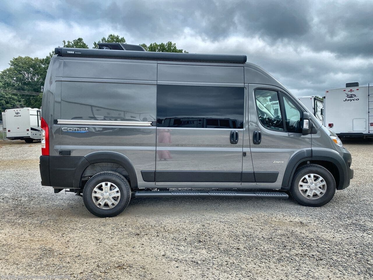 The small and nimble Comet Class B gas motorhome by Jayco is ready for adventure when you are! You'll appreciate the RAM ProMaster 1500 cargo van chassis for a strong and durable foundation, and the 17' 10" overall length means you can easily squeeze into parking spots even in the big city. There are added safety features for your peace of mind, like the LaneSense lane departure warning, drowsy driver detection, and forward collision warning with active braking. An Aqua-Hot GEN-1 hydronic water and heating system will provide hot water and heat when you need it. You'll be surprised by the interior comforts and functionality found in this compact camper van, including a convertible sofa/bed, residential vinyl flooring, swivel seats, and an adjustable table with multiple mounts to name a few!