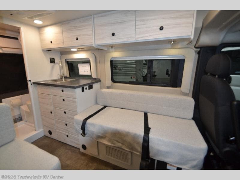Enjoy every trip you take in this small, but mighty camper van! You will enjoy the drive just as much as the destination with a 10.1" Uconnect 5 NAV infotainment center and a ParkView rear backup camera. There is a 54" sofa to relax on once you park, and at night you can convert the sofa to a 54" x 72" bed. And the 27" bench seat is close by the entrance to provide a place to pull on your hiking boots. After you've worked up an appetite outdoors, you can prepare lunch on the portable induction cooktop, clean up with the stainless steel sink, and store leftovers in the 3 cu. ft. refrigerator/freezer. This model also includes a rear wet bath so you can freshen up before bed, and the bath wardrobe will let you keep your clothes and towels tidy!