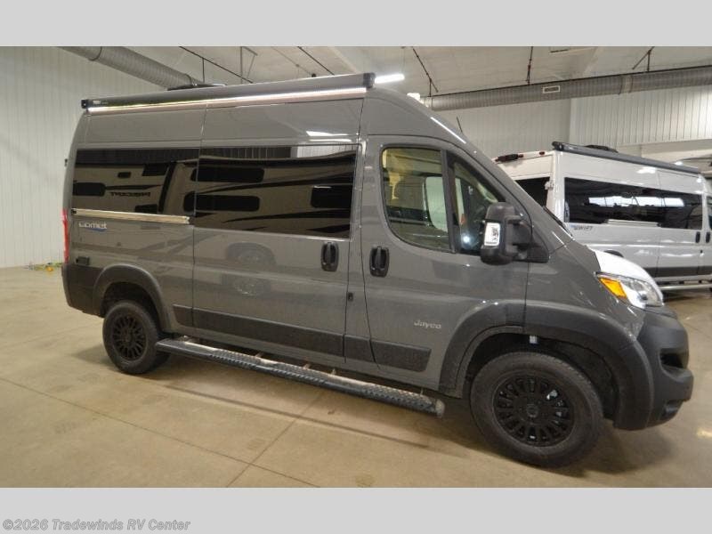 The small and nimble Comet Class B gas motorhome by Jayco is ready for adventure when you are! You'll appreciate the RAM ProMaster 1500 cargo van chassis for a strong and durable foundation, and the 17' 10" overall length means you can easily squeeze into parking spots even in the big city. There are added safety features for your peace of mind, like the LaneSense lane departure warning, drowsy driver detection, and forward collision warning with active braking. An Aqua-Hot GEN-1 hydronic water and heating system will provide hot water and heat when you need it. You'll be surprised by the interior comforts and functionality found in this compact camper van, including a convertible sofa/bed, residential vinyl flooring, swivel seats, and an adjustable table with multiple mounts to name a few!
