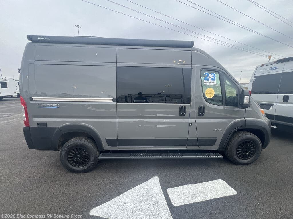 The small and nimble Comet Class B gas motorhome by Jayco is ready for adventure when you are! You'll appreciate the RAM ProMaster 1500 cargo van chassis for a strong and durable foundation, and the 17' 10" overall length means you can easily squeeze into parking spots even in the big city. There are added safety features for your peace of mind, like the LaneSense lane departure warning, drowsy driver detection, and forward collision warning with active braking. An Aqua-Hot GEN-1 hydronic water and heating system will provide hot water and heat when you need it. You'll be surprised by the interior comforts and functionality found in this compact camper van, including a convertible sofa/bed, residential vinyl flooring, swivel seats, and an adjustable table with multiple mounts to name a few!