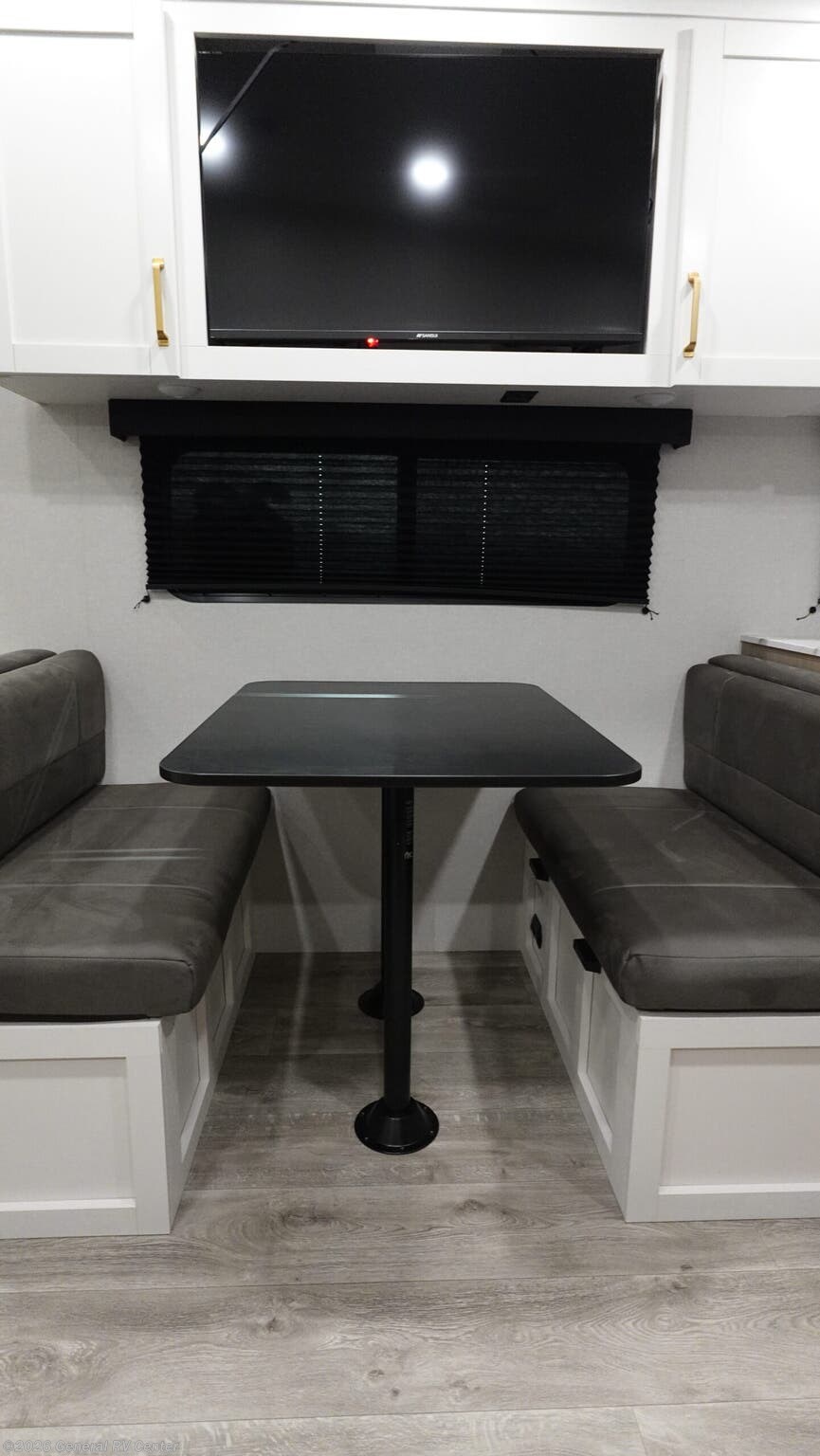 Welcome to the 2026 Jayco Eagle SLE 24MLE, where comfort meets adventure in a compact yet spacious design. This 29-foot travel trailer is perfect for those who crave the open road without sacrificing the comforts of home. As you enter, you'll be greeted by a welcoming living area featuring a tri-fold sofa, perfect for relaxing after a day of exploration. The adjacent dinette provides a cozy spot for meals or game nights, with a TV positioned perfectly for entertainment. The kitchen is efficiently designed with a microwave and a 12V refrigerator, ensuring you have everything you need to whip up your favorite meals. The private master bedroom boasts a 60" x 80" queen bed, flanked by convenient nightstands and ample overhead cabinetry, ensuring you have plenty of storage for your belongings. The bathroom offers a 30” x 36” shower, providing a touch of luxury on the go. With a fresh water capacity of 52 gallons and generous gray and black water tanks, you can enjoy extended stays in your favorite locations. The 16-foot awning invites you to enjoy the great outdoors, providing shade and relaxation space for you and your loved ones. Discover the perfect blend of style, comfort, and practicality with the Jayco Eagle SLE 24MLE. For more details and to experience this beauty firsthand, visit your nearest General RV Dealership.