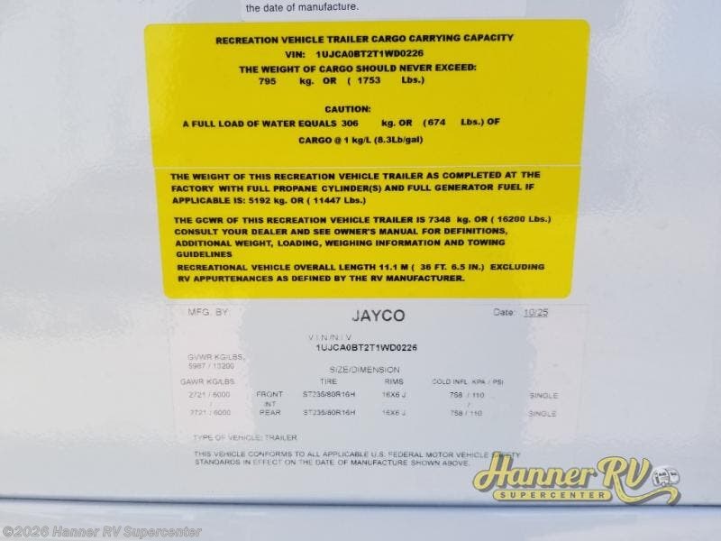 Request More Info on this 2026 Jayco Eagle 321RSTS Offered for sale by Hanner RV Supercenter