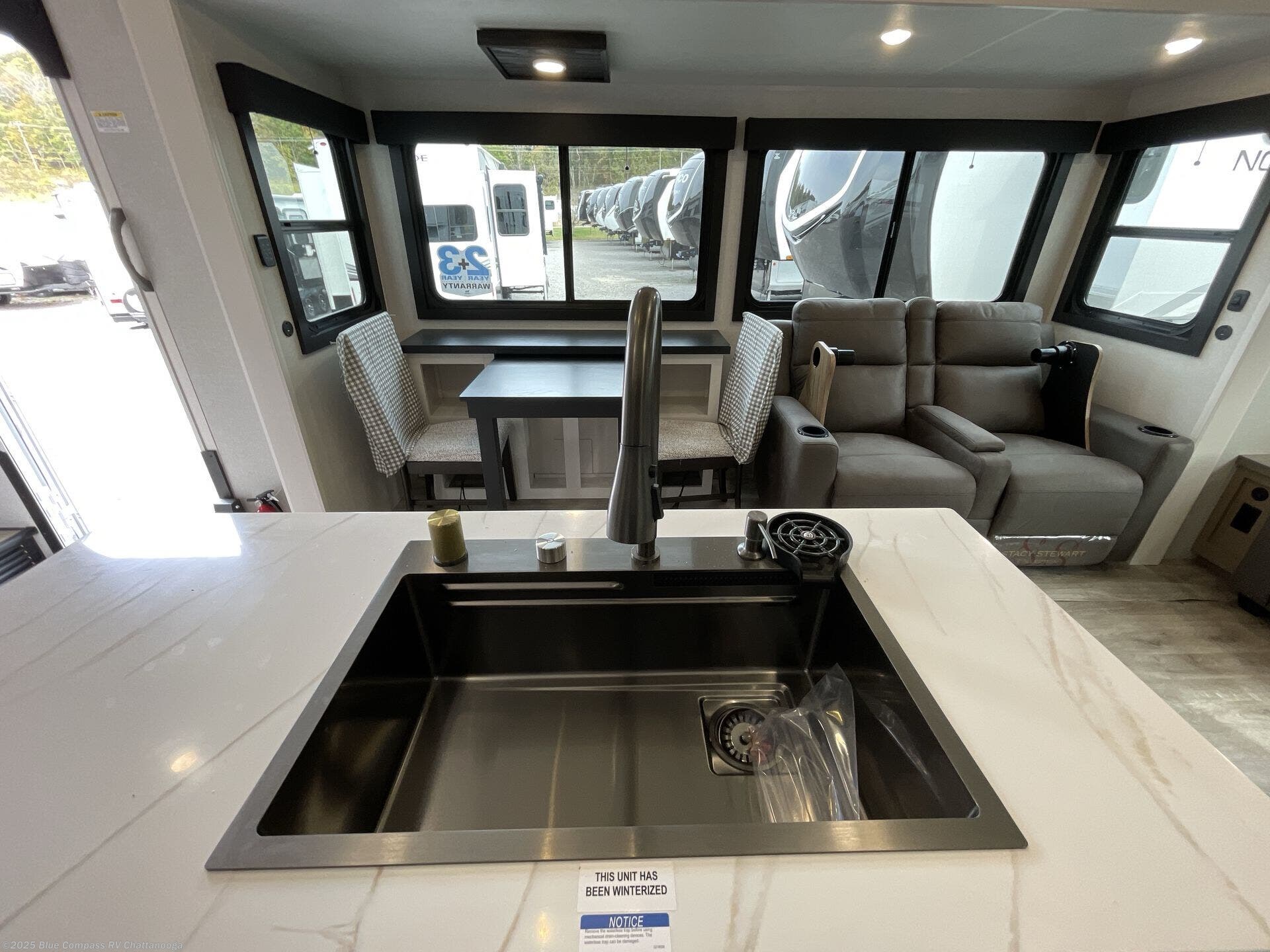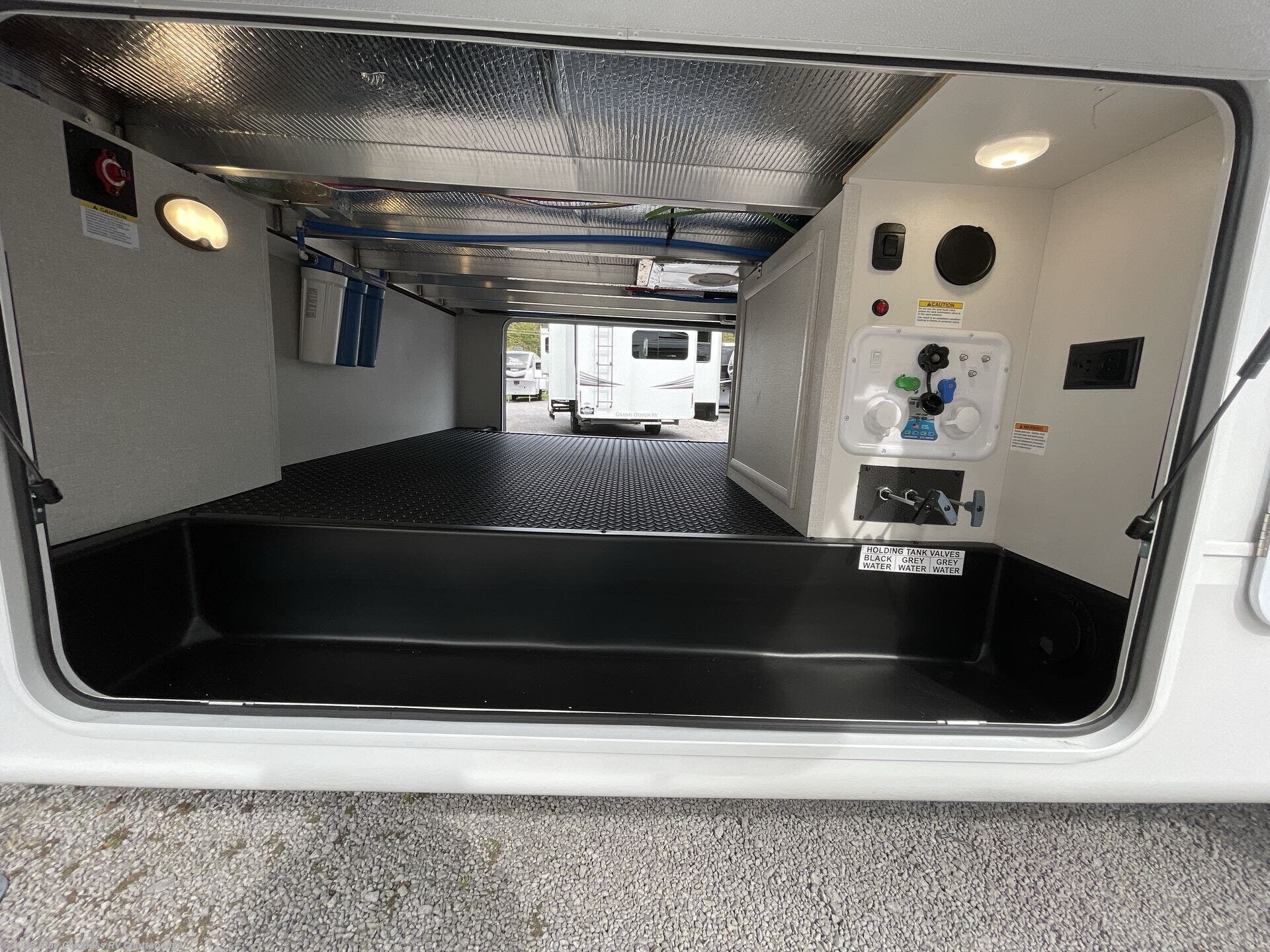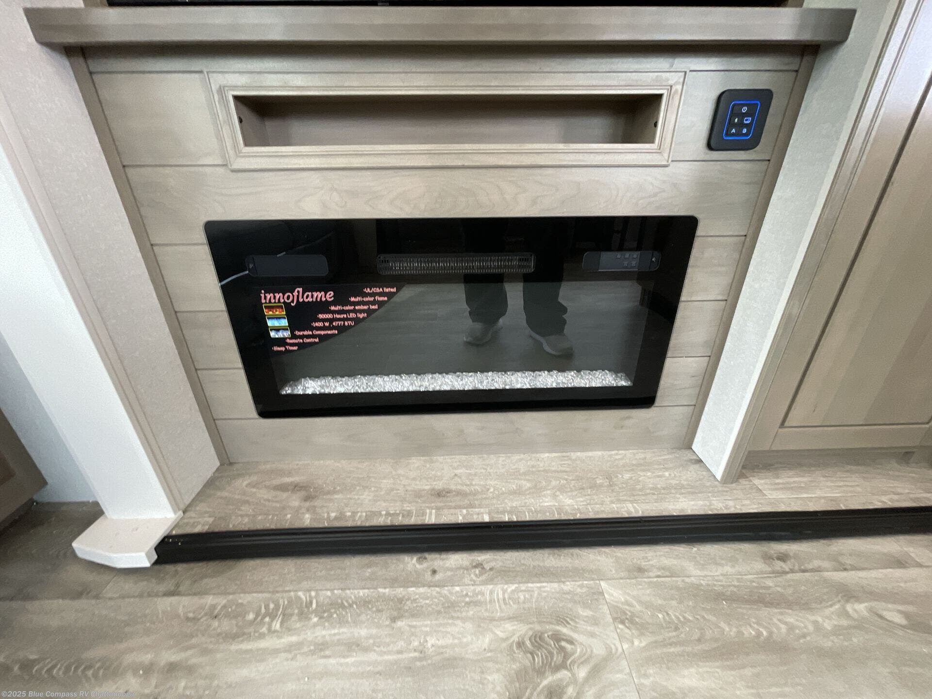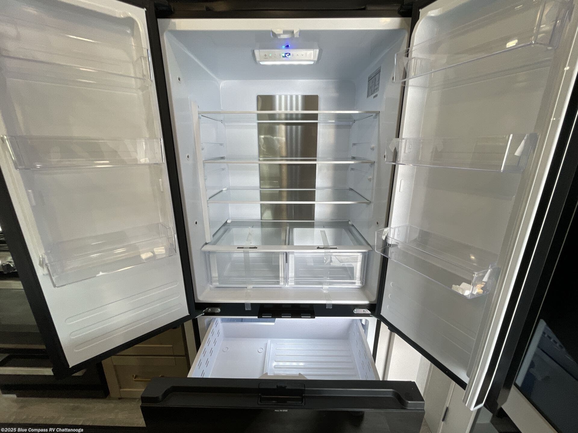 Triple slides for space, plenty of seating spaces, plus a spacious private bedroom make this fifth wheel one you won't want to pass up! You can freshen up each day in the full bath that includes a residential style glass shower door, a bathroom skylight, and a medicine cabinet to keep this space organized. Once you've cut up some fresh fruit at the kitchen island, whip up some eggs and bacon for breakfast, or just grab the cereal from the pantry. There is a spacious 16 cu. ft. 12V refrigerator, plus a hutch where you can store your own coffee machine. Relax on the tri-fold sofa, theater seat, or free-standing table with chairs/bench before heading out for the day. The king bed slide out in the front private bedroom will be waiting for you when you return!