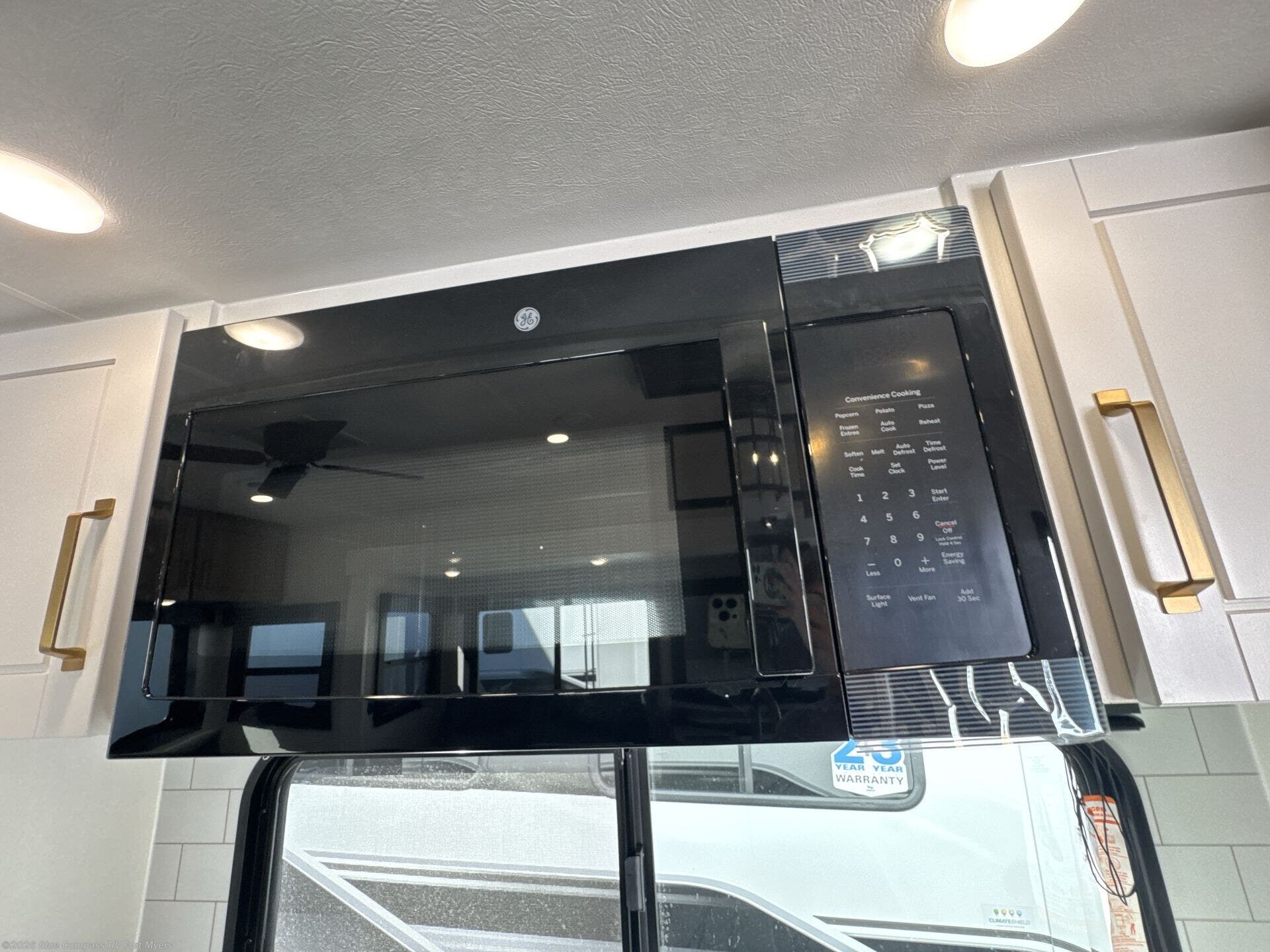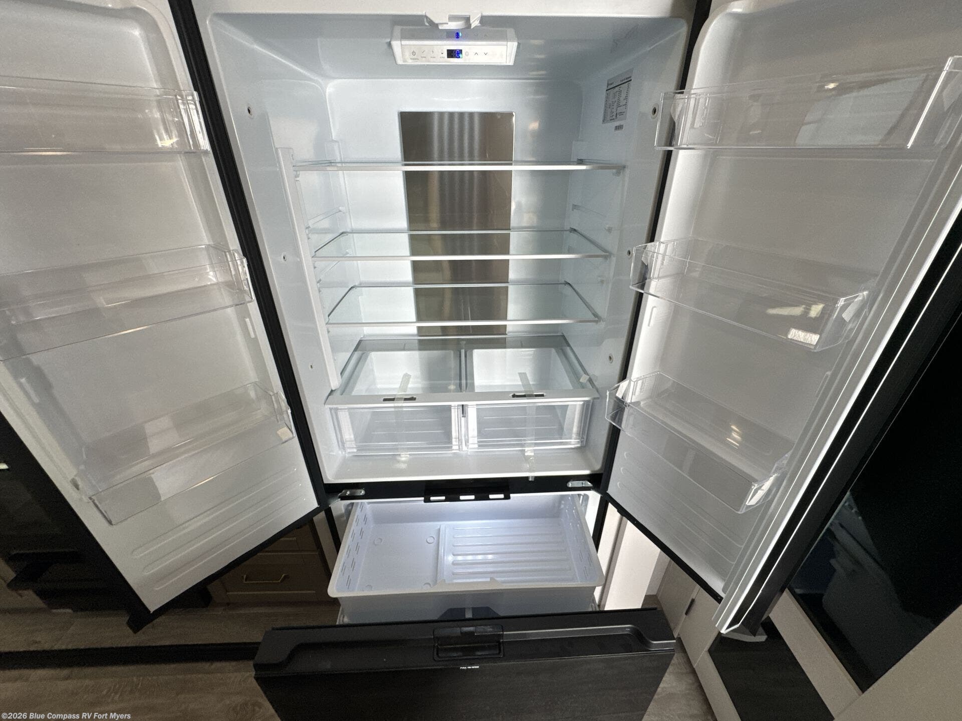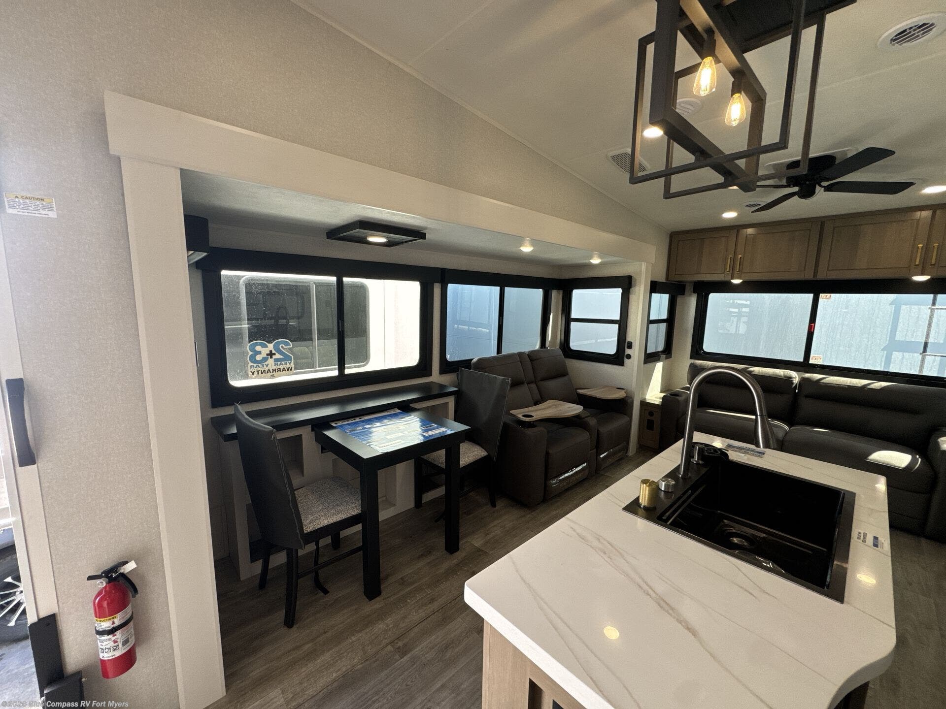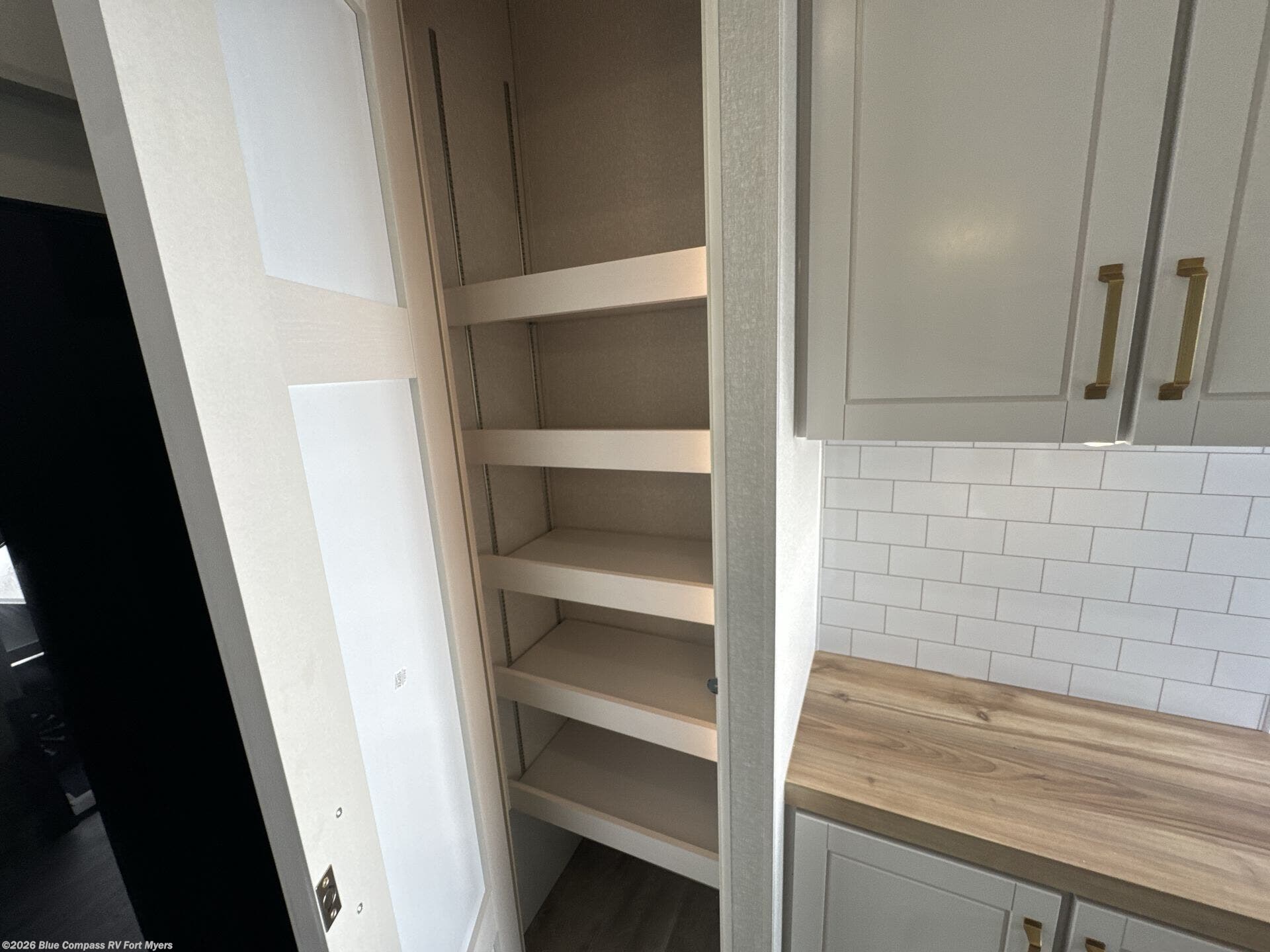 Triple slides for space, plenty of seating spaces, plus a spacious private bedroom make this fifth wheel one you won't want to pass up! You can freshen up each day in the full bath that includes a residential style glass shower door, a bathroom skylight, and a medicine cabinet to keep this space organized. Once you've cut up some fresh fruit at the kitchen island, whip up some eggs and bacon for breakfast, or just grab the cereal from the pantry. There is a spacious 16 cu. ft. 12V refrigerator, plus a hutch where you can store your own coffee machine. Relax on the tri-fold sofa, theater seat, or roll top dinette table with chairs before heading out for the day. The king bed slide out in the front private bedroom will be waiting for you when you return!