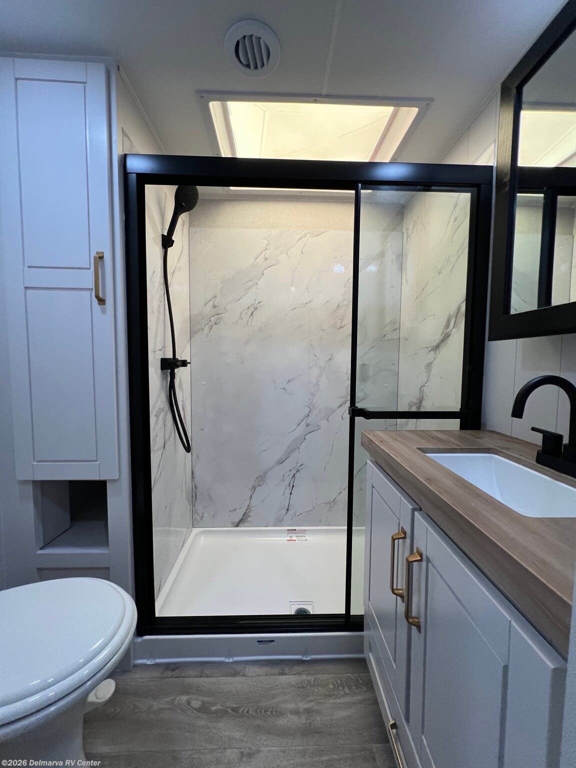 Ceiling Fan, Fireplace, Free Standing Dinette w/Chairs, King Size Bed, Medicine Cabinet, Rocker Recliner(s), Roof Vents, Shower, Toilet -
