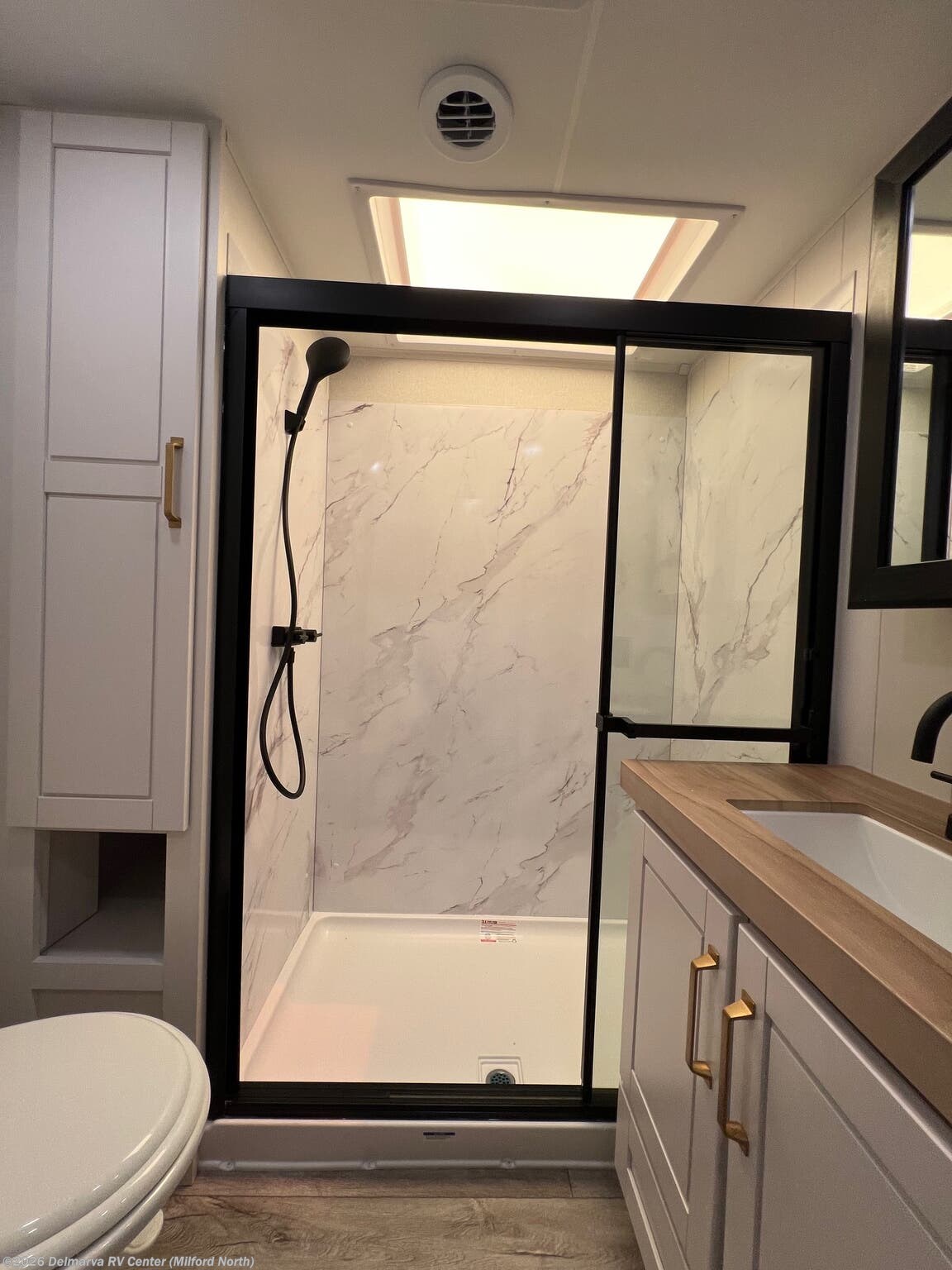 Ceiling Fan, Fireplace, Free Standing Dinette w/Chairs, King Size Bed, Medicine Cabinet, Queen Bed, Rocker Recliner(s), Roof Vents, Shower, Toilet -