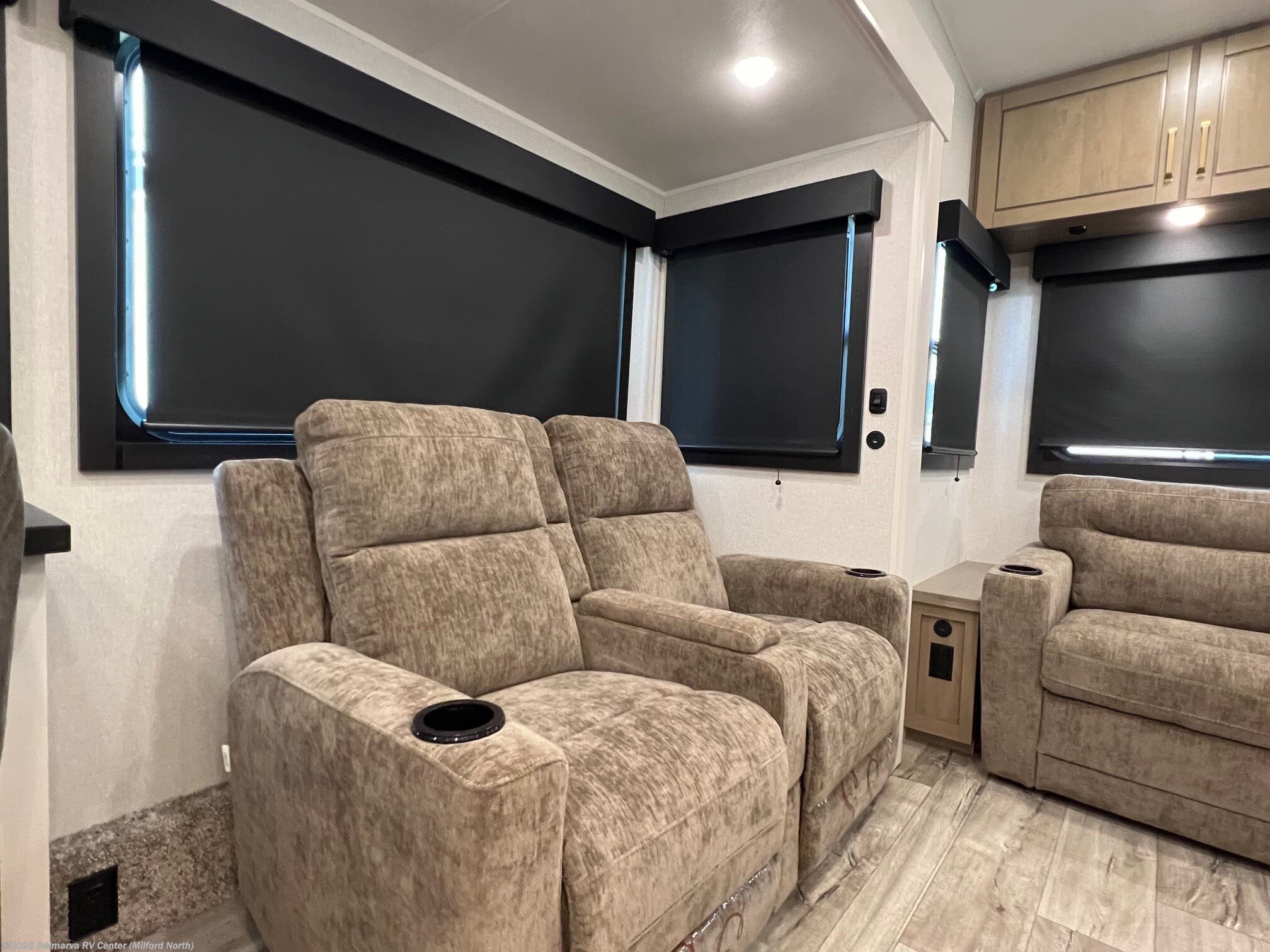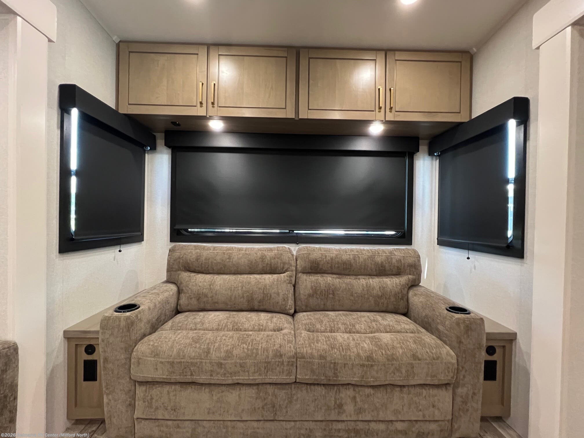 Enjoy your RV travels in style with this 2026 Jayco Eagle 355MBQS. Be a part of the Jayco family with this 2026 Jayco Eagle 355MBQS. This rig sleeps 10, so it makes the perfect family RV. This rig cuts no corners on space, expanding into a massive living area with 4 slides. Cook up the best camping meals with appliances like the fridge, oven, stove. Even more RV memories will be made as you spend quality time watching a movie on the TV.. Use the free standing dinette w/chairs for dinner time, homeschooling or remote work days. Comfort is important when RVing, and you’ll find just that with the king size bed. You’ll never get too hot or too cold inside your rig thanks to the A/C option. Go longer without filling up thanks to the 81 gallon fresh water tanks. While the inside of this rig is enough on its own, the outside also features awning, exterior speakers, external shower, hitch, ladder, leveling jacks, outside kitchen, power roof vent, skylight, slideout and spare tire kit. Wash up from your adventures with the outside shower. Be the host with the most at the campground, bringing the good times with your outside kitchen.