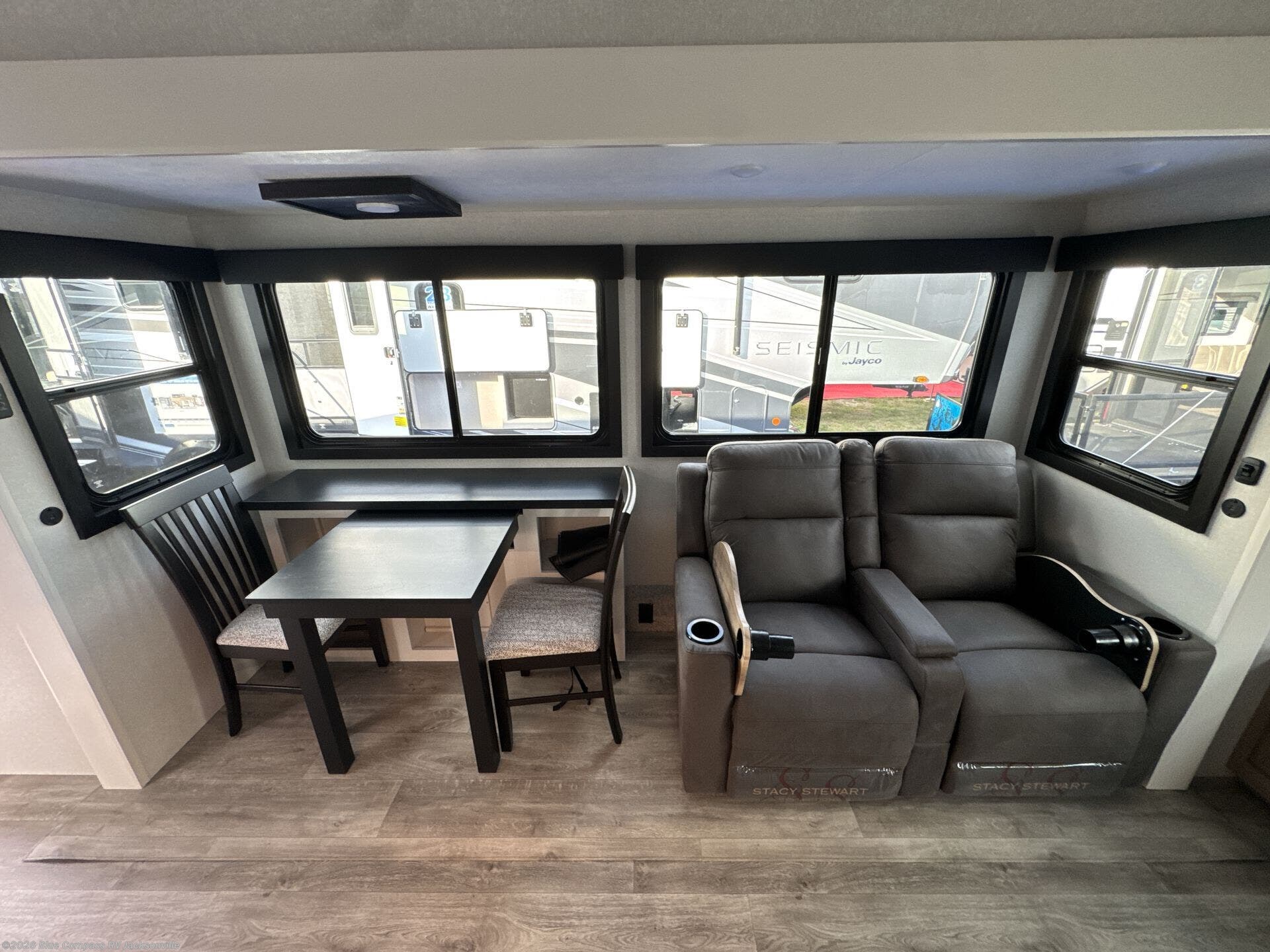 With any Eagle fifth wheel by Jayco you will appreciate durable construction materials, like the Magnum Truss Roof and the Stronghold VBL laminated walls. The JAYCOMMAND Smart RV system puts you in control of your RV's functions, and the 5 Star Handling Package will provide smooth towing from home to camp. Each model features Climate Shield zero-degree tested weather protection and the industry-exclusive HELIX cooling system that features two 15,000 BTU Whisper Quiet A/C's to keep you comfortable year around. Some of the exterior conveniences you are sure to love are the pass-through storage with Slam-Latch baggage doors and an automotive style front cap with max turn radius. The Eagle fifth wheels are designed to make you feel at home with solid hardwood slide fascia, residential vinyl flooring throughout, 100% no floor vents, and blackout roller shades with reflective side throughout for added privacy and insulation.