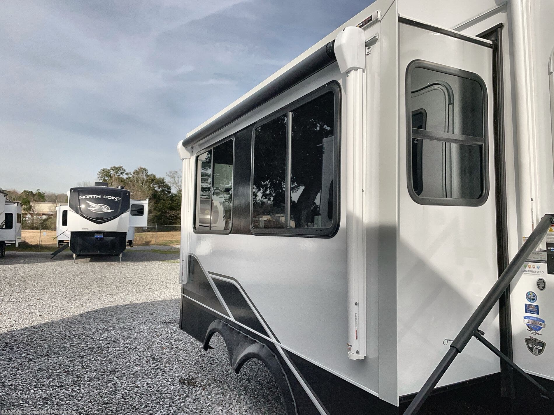 With any Eagle fifth wheel by Jayco you will appreciate durable construction materials, like the Magnum Truss Roof and the Stronghold VBL laminated walls. The JAYCOMMAND Smart RV system puts you in control of your RV's functions, and the 5 Star Handling Package will provide smooth towing from home to camp. Each model features Climate Shield zero-degree tested weather protection and the industry-exclusive HELIX cooling system that features two 15,000 BTU Whisper Quiet A/C's to keep you comfortable year around. Some of the exterior conveniences you are sure to love are the pass-through storage with Slam-Latch baggage doors and an automotive style front cap with max turn radius. The Eagle fifth wheels are designed to make you feel at home with solid hardwood slide fascia, residential vinyl flooring throughout, 100% no floor vents, and blackout roller shades with reflective side throughout for added privacy and insulation.