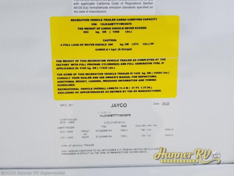 Request More Info on this 2026 Jayco Eagle 365UKTS Offered for sale by Hanner RV Supercenter