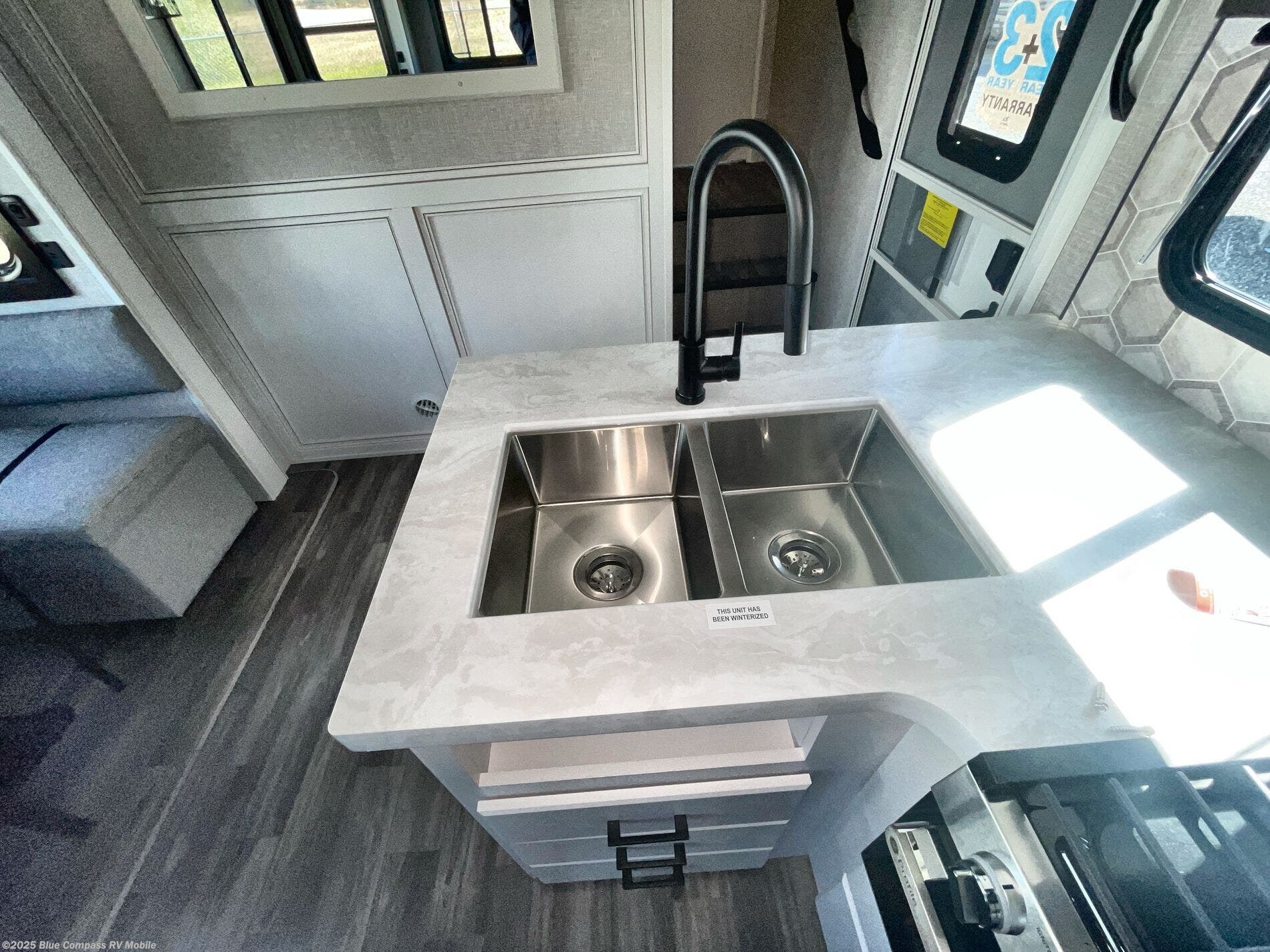 With any Eagle HT fifth wheel or travel trailer by Jayco you will enjoy a smooth drive thanks to the 4 Star Handling Package and MORryde CRE-3000 rubberized suspension. The Customer Value Package includes amenities that are sure to make camping easier than ever, like the 60K on-demand water heater, Keyed-Alike lock system, 15,000 BTU "Whisper Quiet" A/C, and more. Handcrafted door/drawer fronts will make your space feel more like home, along with residential vinyl flooring throughout, GE appliances, and blackout roller shades with reflective side throughout to keep the sun out when you want to sleep in. Each model also includes a NuVo H2O water treatment system with filters included, interior and exterior "Blue Sync" audio connect with MB Quart Sound for your TV and phone, and 100% no floor vents for added comfort and convenience!