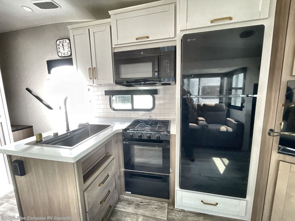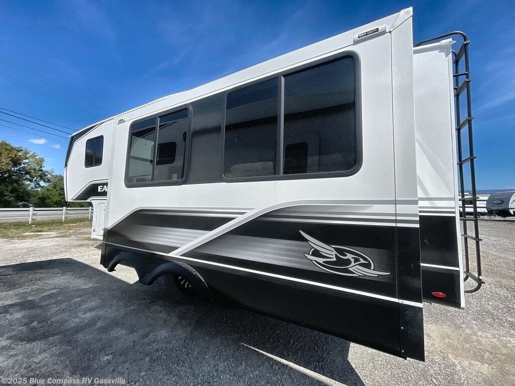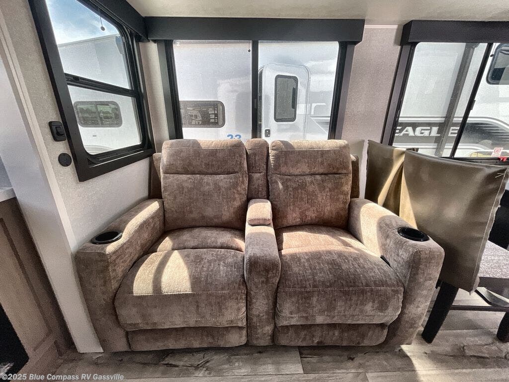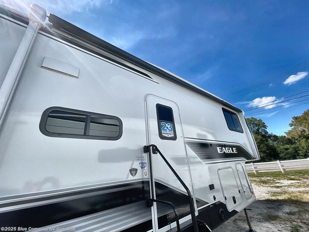 With any Eagle HT fifth wheel or travel trailer by Jayco you will enjoy a smooth drive thanks to the 4 Star Handling Package, Goodyear Endurance tires, and MORryde CRE-3000 rubberized suspension. The Customer Value Package includes amenities that are sure to make camping easier than ever, like the 60K on-demand water heater, Keyed-Alike lock system, 15,000 BTU "Whisper Quiet" A/C, and more. Handcrafted and glazed door/drawer fronts will make your space feel more like home, along with residential vinyl flooring throughout, GE appliances, and blackout roller shades with reflective side throughout to keep the sun out when you want to sleep in. Each model also includes a NuVo H2O water treatment system with filters included, interior and exterior "Blue Sync" audio connect with MB Quart Sound for your TV and phone, and 100% no floor vents for added comfort and convenience!