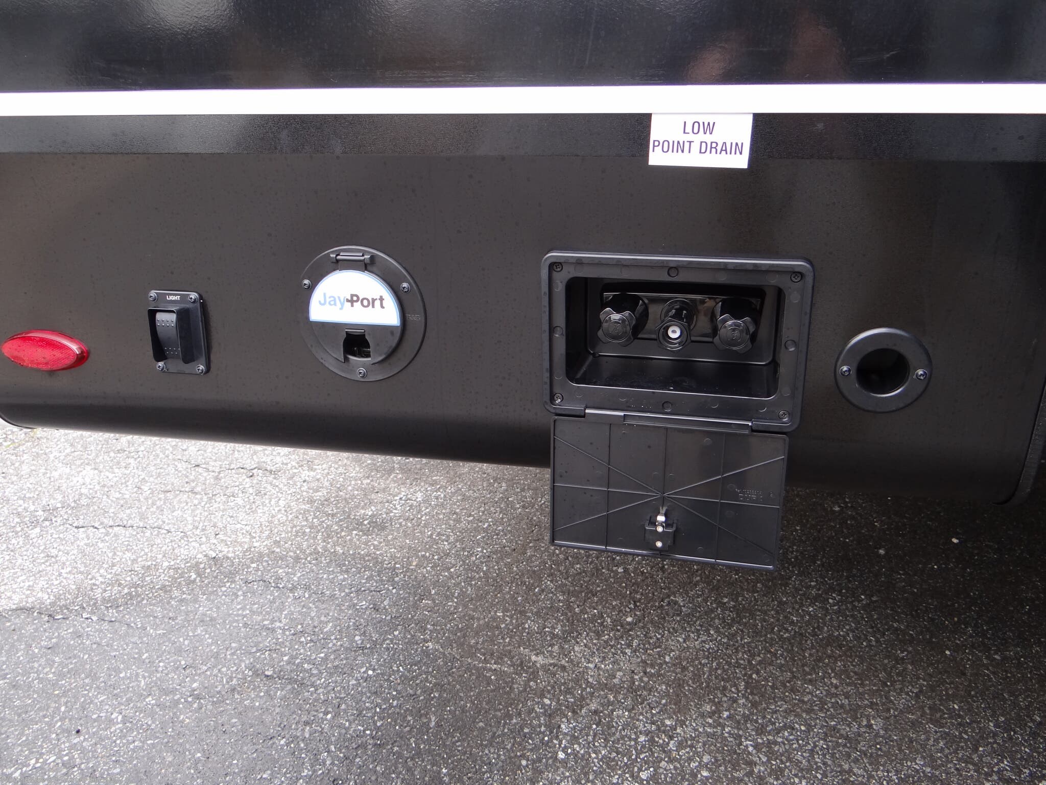 Luxury Package: Blackout Roller Shades w/Reflective Side Throughout, Electric Auto Leveling, GE 10 Cu.Ft. 12V refrigerator w/Black Glass Front, JayPort 2" mount for outside accessories, Residential Style Glass Shower Door, Washer/Dryer Prep (Select Models), GE 30" OTR Black & Stainless Microwave w/Exhaust Fan, GE 21" Black & Stainless Range w/Edge to Edge Grates, Multi-Function "All In One" Black Stainless Steel Kitchen Sink, Residential Olympic 66"x80" Mattress, Magnetic Catches for all Doors and Drawers, Solid Surface Kitchen Countertop(s), LED Fireplace w/5K BTU Electric Space Heater, Jay Command w/Monitor Switch Panel, Exterior Light & Outlet at JayPort Location