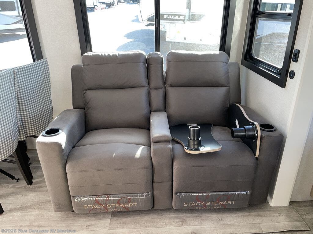 With any Eagle HT fifth wheel or travel trailer by Jayco you will enjoy a smooth drive thanks to the 4 Star Handling Package and MORryde CRE-3000 rubberized suspension. The Customer Value Package includes amenities that are sure to make camping easier than ever, like the 60K on-demand water heater, Keyed-Alike lock system, 15,000 BTU "Whisper Quiet" A/C, and more. Handcrafted door/drawer fronts will make your space feel more like home, along with residential vinyl flooring throughout, GE appliances, and blackout roller shades with reflective side throughout to keep the sun out when you want to sleep in. Each model also includes a NuVo H2O water treatment system with filters included, interior and exterior "Blue Sync" audio connect with MB Quart Sound for your TV and phone, and 100% no floor vents for added comfort and convenience!