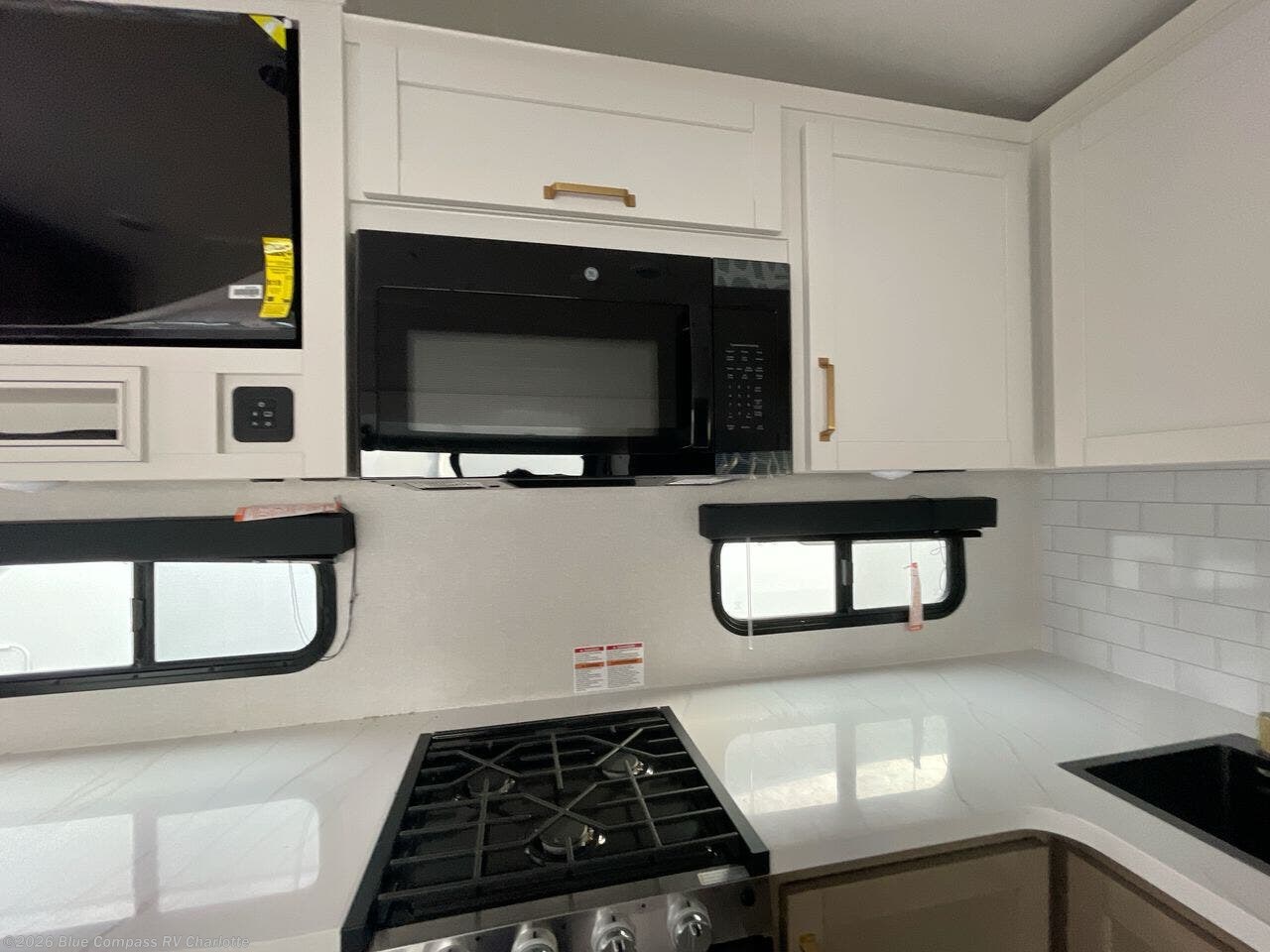 With any Eagle HT fifth wheel or travel trailer by Jayco you will enjoy a smooth drive thanks to the 4 Star Handling Package and MORryde CRE-3000 rubberized suspension. The Customer Value Package includes amenities that are sure to make camping easier than ever, like the 60K on-demand water heater, Keyed-Alike lock system, 15,000 BTU "Whisper Quiet" A/C, and more. Handcrafted door/drawer fronts will make your space feel more like home, along with residential vinyl flooring throughout, GE appliances, and blackout roller shades with reflective side throughout to keep the sun out when you want to sleep in. Each model also includes a NuVo H2O water treatment system with filters included, interior and exterior "Blue Sync" audio connect with MB Quart Sound for your TV and phone, and 100% no floor vents for added comfort and convenience!