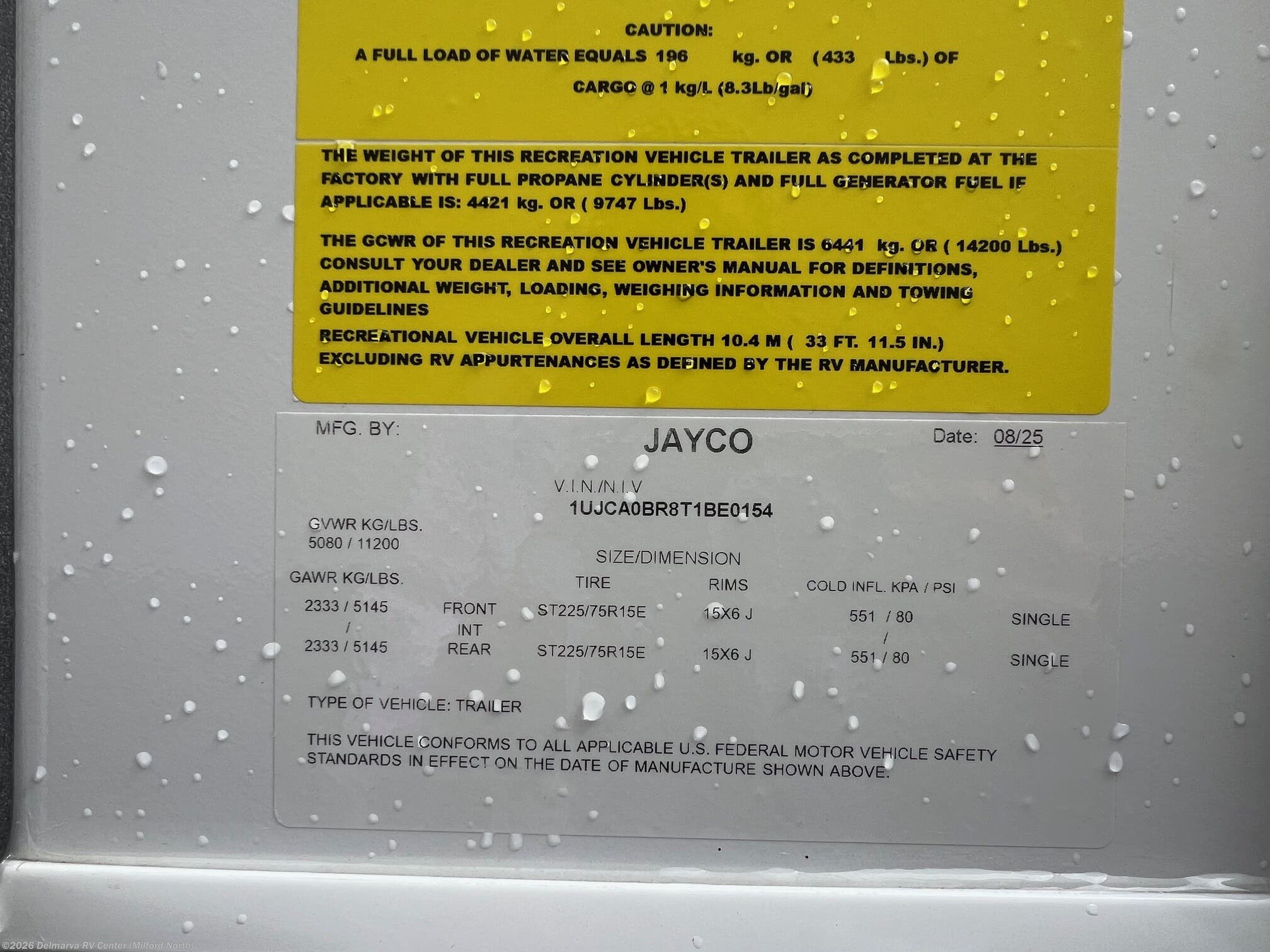 This 2026 Jayco Eagle HT 29RLC is an RV the whole family will love. Ready to be a proud Jayco owner? This 2026 Jayco Eagle HT 29RLC is the perfect fit. If you’re looking for a family RV, you’ve found it: this rig sleeps 4. Two slides expand this rig into a comfy living space. It doesn’t matter whether you are cooking for one or an entire campground, this kitchen has everything you need with the fridge, oven, stove. Even more RV memories will be made as you spend quality time watching a movie on the TV.. Remote work, homeschooling and dinner times are all made possible by the free standing dinette w/chairs. Sweet dreams are made of the queen bed in this RV bedroom. You’ll never get too hot or too cold inside your rig thanks to the A/C option. If you’re thinking of heading off grid, this rig has a 52 fresh water tank. The exterior features make camping a breeze, such as awning, exterior speakers, external shower, hitch, ladder, leveling jacks, power roof vent, skylight, slideout and spare tire kit. Make sure kids don’t track mud inside with the outside shower.