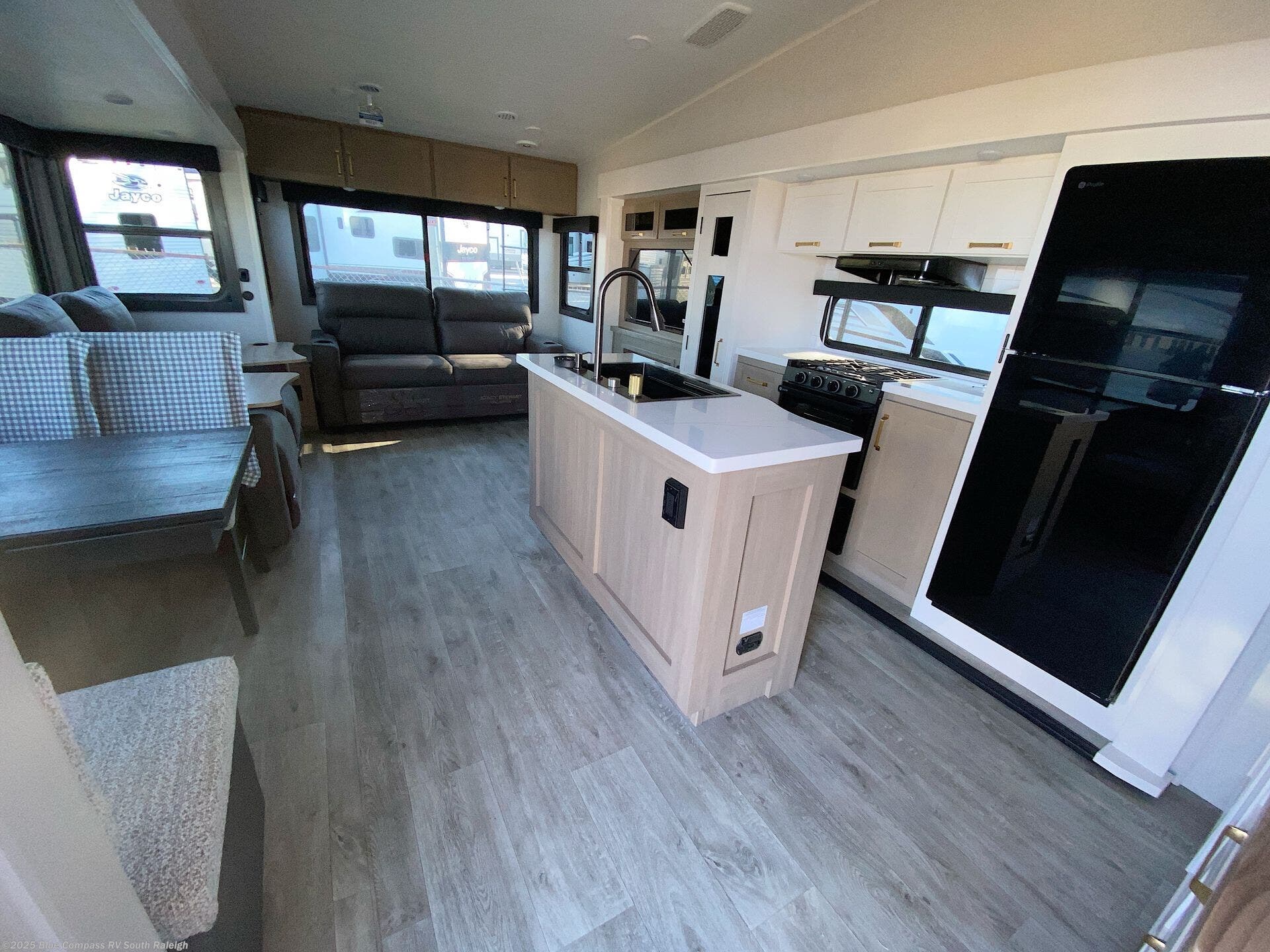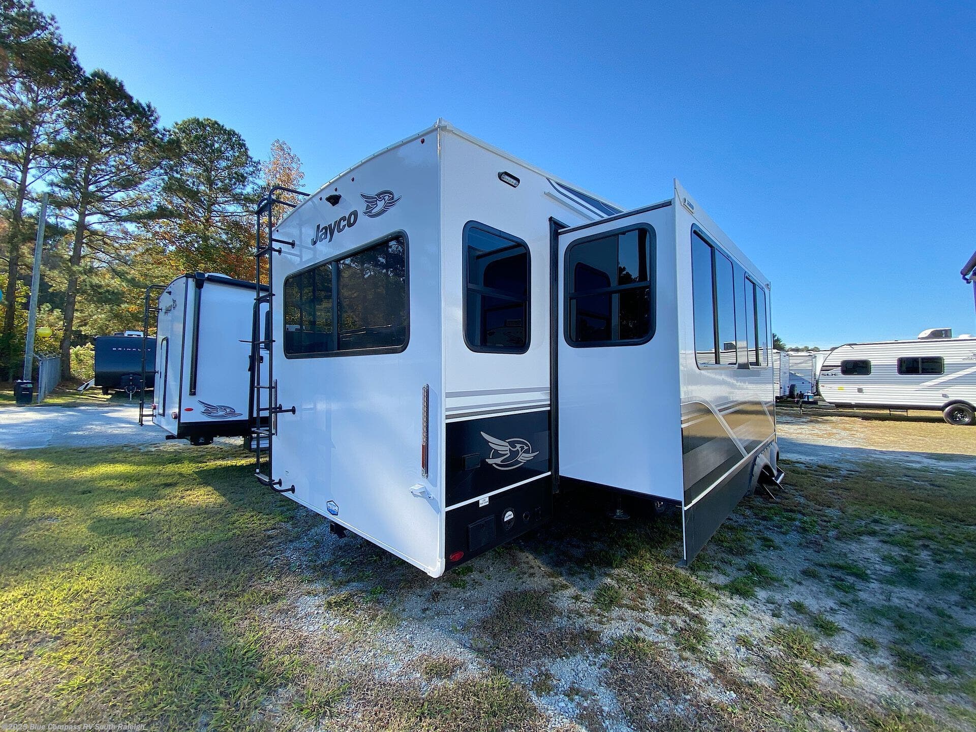 With any Eagle HT fifth wheel or travel trailer by Jayco you will enjoy a smooth drive thanks to the 4 Star Handling Package and MORryde CRE-3000 rubberized suspension. The Customer Value Package includes amenities that are sure to make camping easier than ever, like the 60K on-demand water heater, Keyed-Alike lock system, 15,000 BTU "Whisper Quiet" A/C, and more. Handcrafted door/drawer fronts will make your space feel more like home, along with residential vinyl flooring throughout, GE appliances, and blackout roller shades with reflective side throughout to keep the sun out when you want to sleep in. Each model also includes a NuVo H2O water treatment system with filters included, interior and exterior "Blue Sync" audio connect with MB Quart Sound for your TV and phone, and 100% no floor vents for added comfort and convenience!