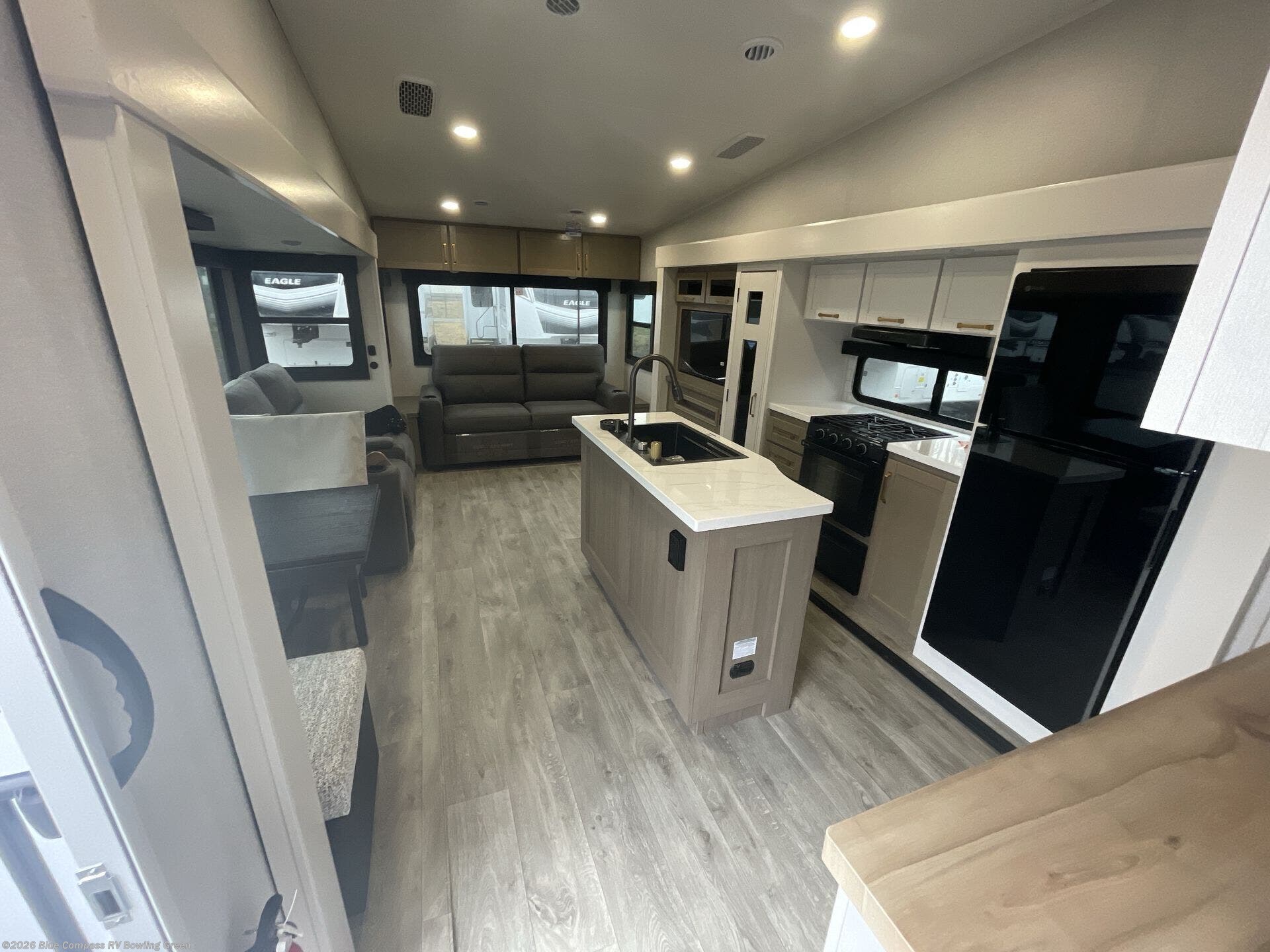 With any Eagle HT fifth wheel or travel trailer by Jayco you will enjoy a smooth drive thanks to the 4 Star Handling Package and MORryde CRE-3000 rubberized suspension. The Customer Value Package includes amenities that are sure to make camping easier than ever, like the 60K on-demand water heater, Keyed-Alike lock system, 15,000 BTU "Whisper Quiet" A/C, and more. Handcrafted door/drawer fronts will make your space feel more like home, along with residential vinyl flooring throughout, GE appliances, and blackout roller shades with reflective side throughout to keep the sun out when you want to sleep in. Each model also includes a NuVo H2O water treatment system with filters included, interior and exterior "Blue Sync" audio connect with MB Quart Sound for your TV and phone, and 100% no floor vents for added comfort and convenience!
