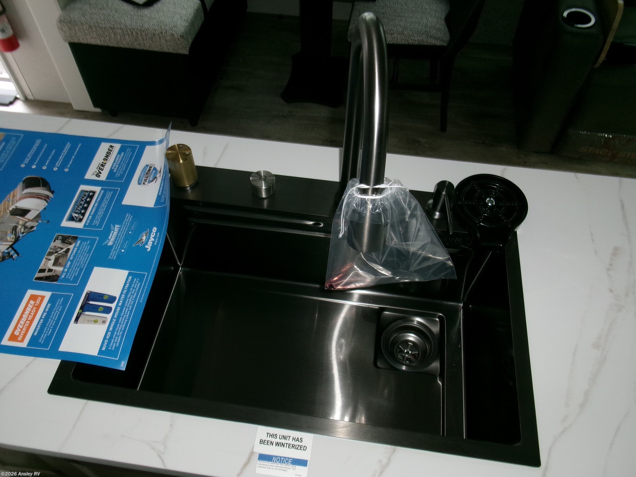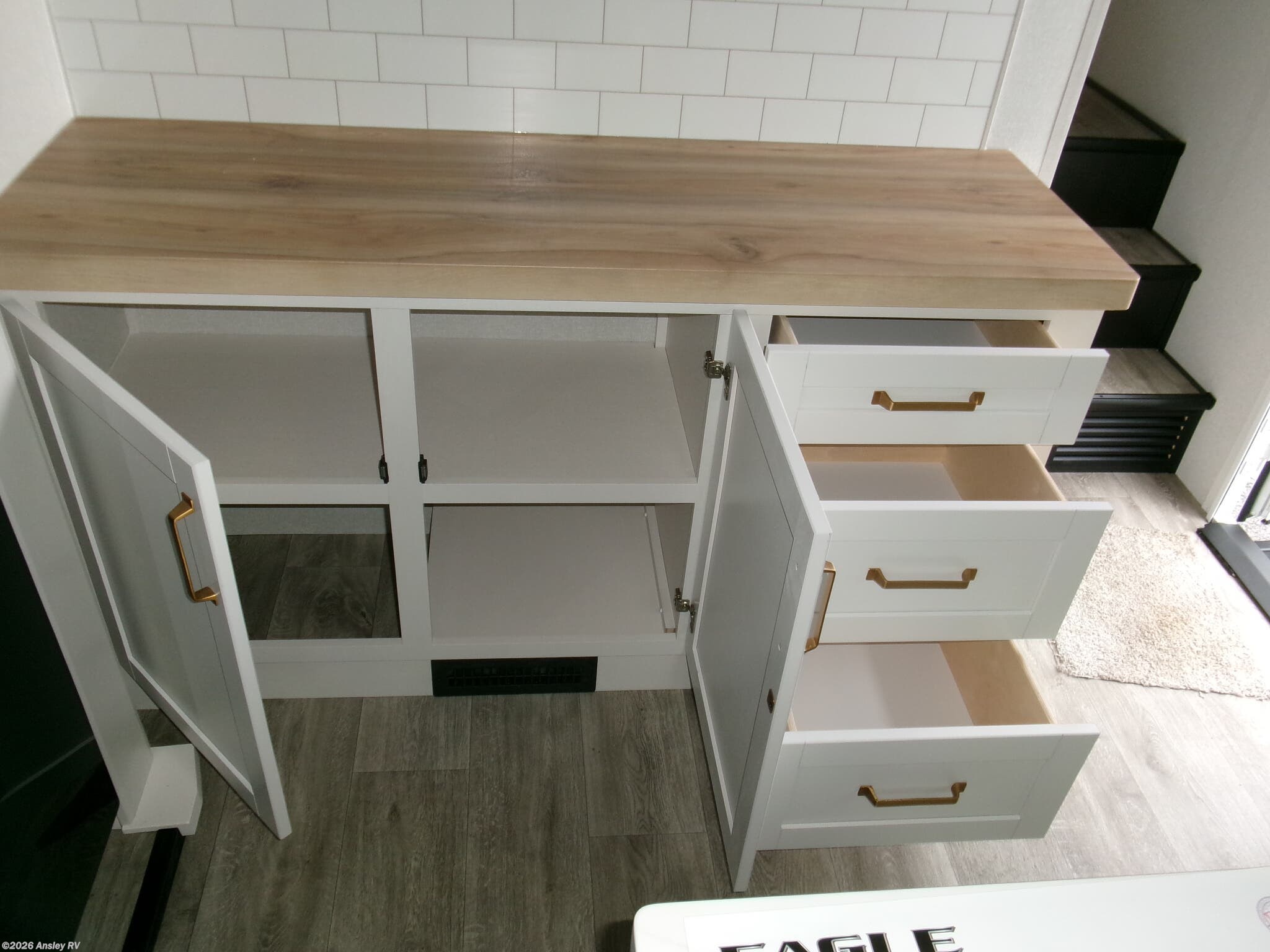 The Eagle HT isn’t just about beauty—it’s built for real-world adventure. JayCommand™ technology lets you control lights, awnings, and tank levels from your phone. A JayPort® outdoor kitchen hookup with hot/cold water means you can grill with a view of the canyon, and flush flooring throughout means no stubbing your toe in the dark.