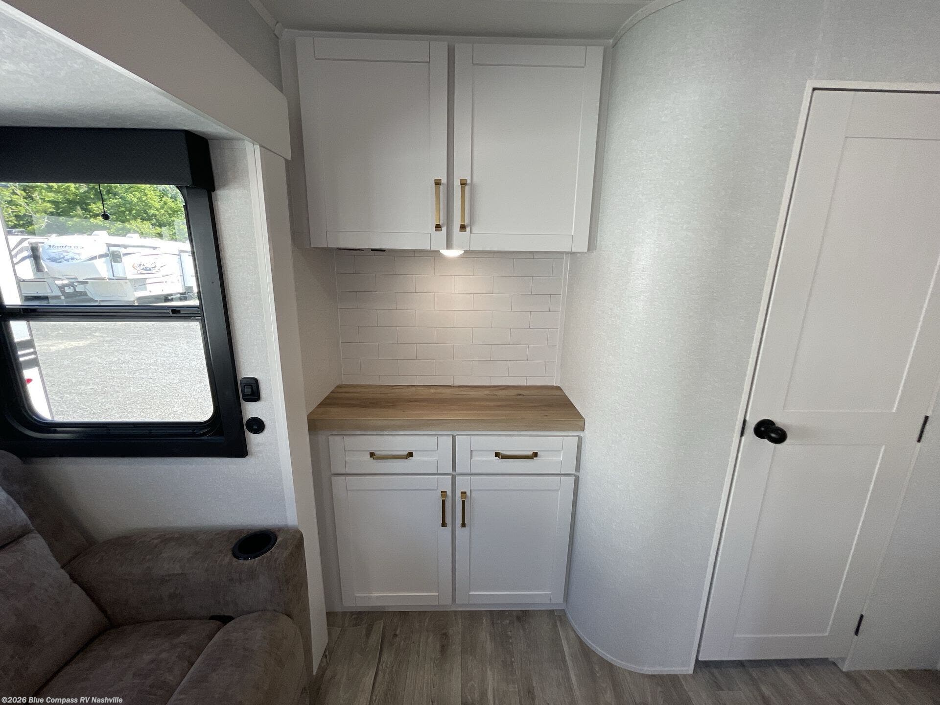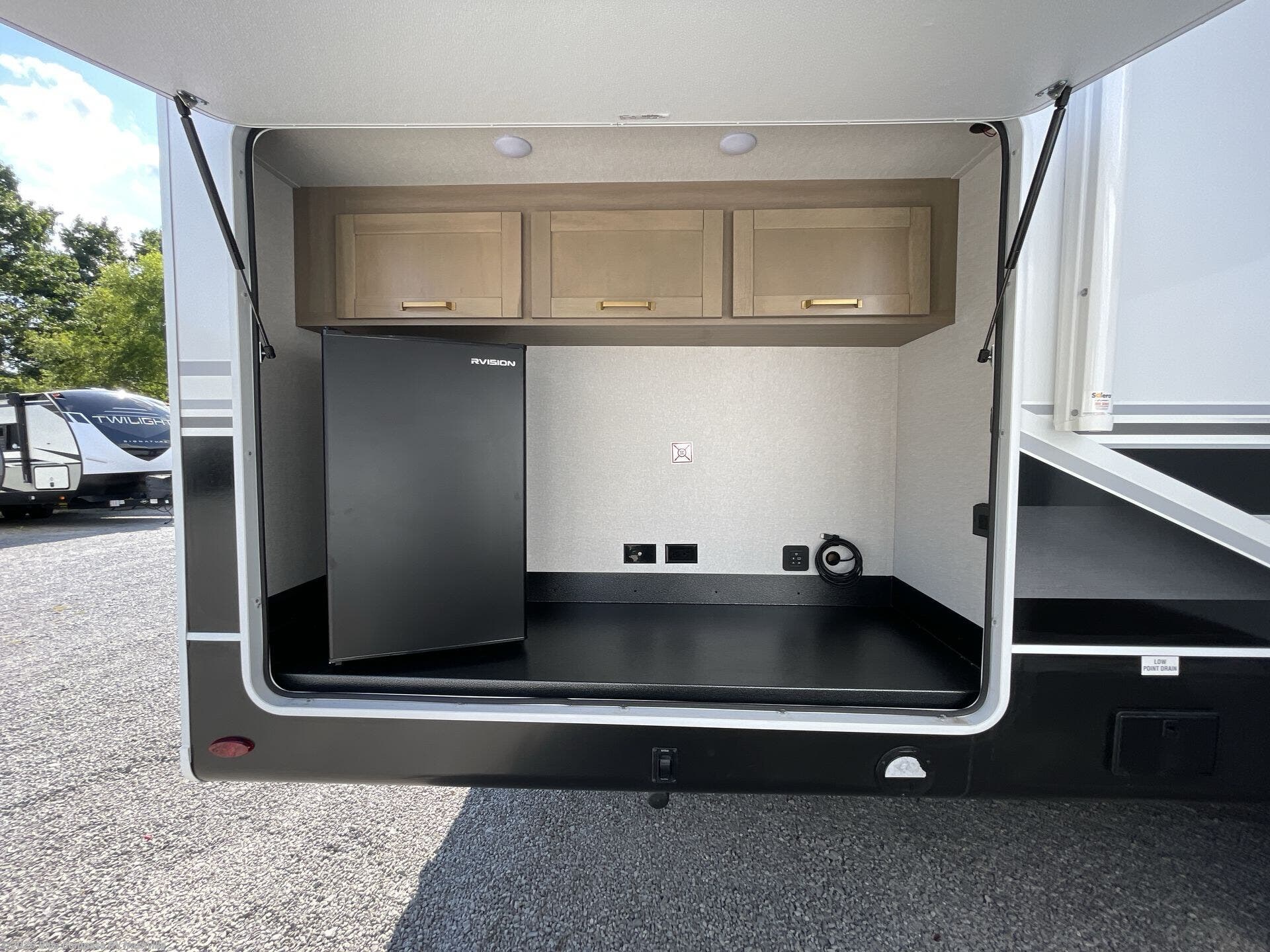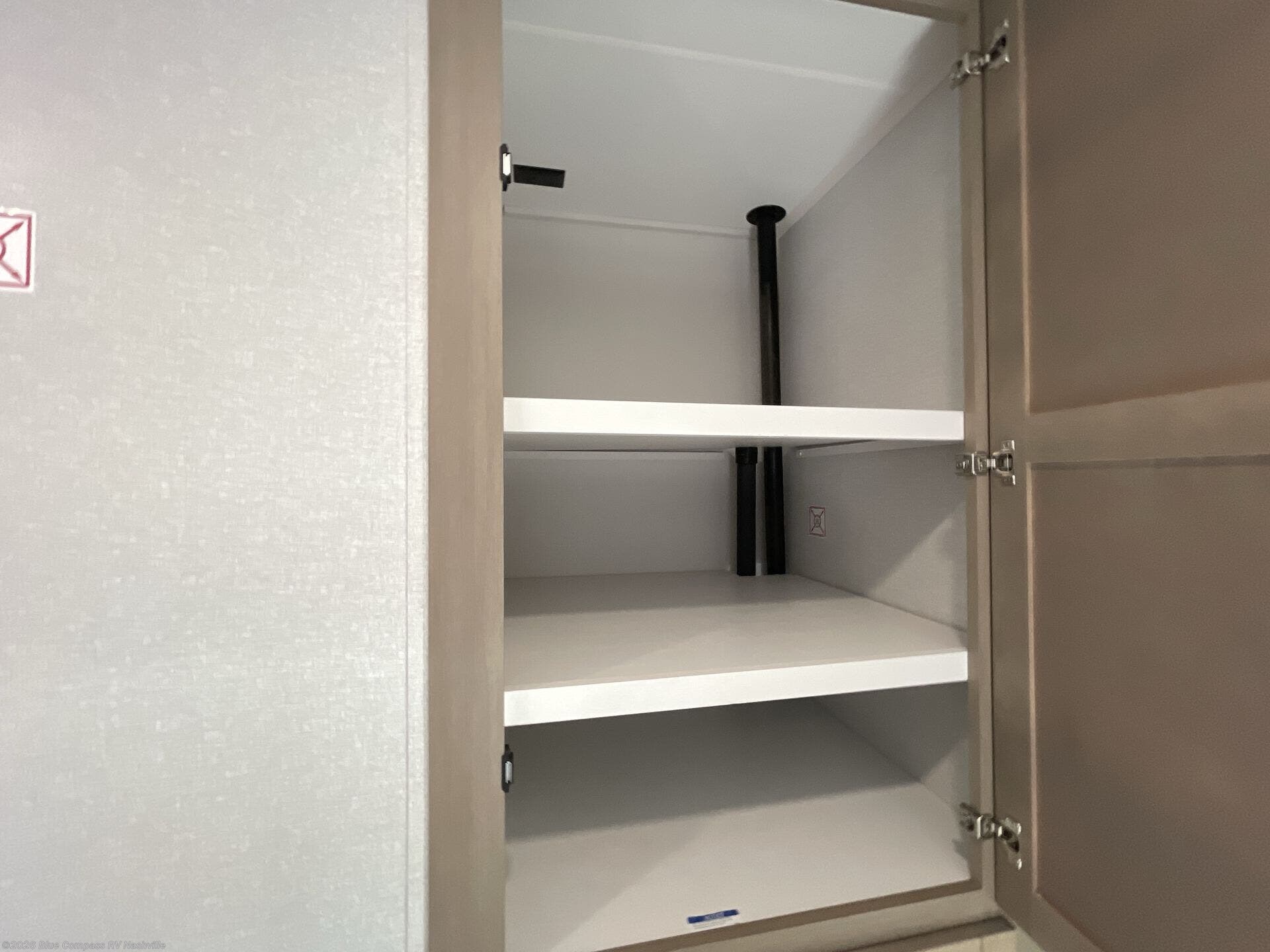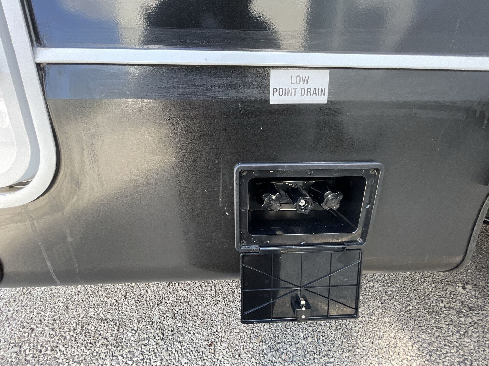 This travel trailer is perfect for your larger group or family! There is a rear private bunkhouse with two bunks, a tri-fold sofa, plus a slide out for more space. You will have the front private bedroom all to yourselves with a queen bed, and any other guests can sleep on the tri-fold sofa and booth dinette! There is also a wardrobe/linen closet with washer and dryer prep if you plan to add a washer and dyer for convenience. The chef can prepare their best meals with the kitchen island and will enjoy having two hutches to store the essentials. They could even cook at the outside kitchen to breathe in some fresh air and enjoy the beautiful scenery!