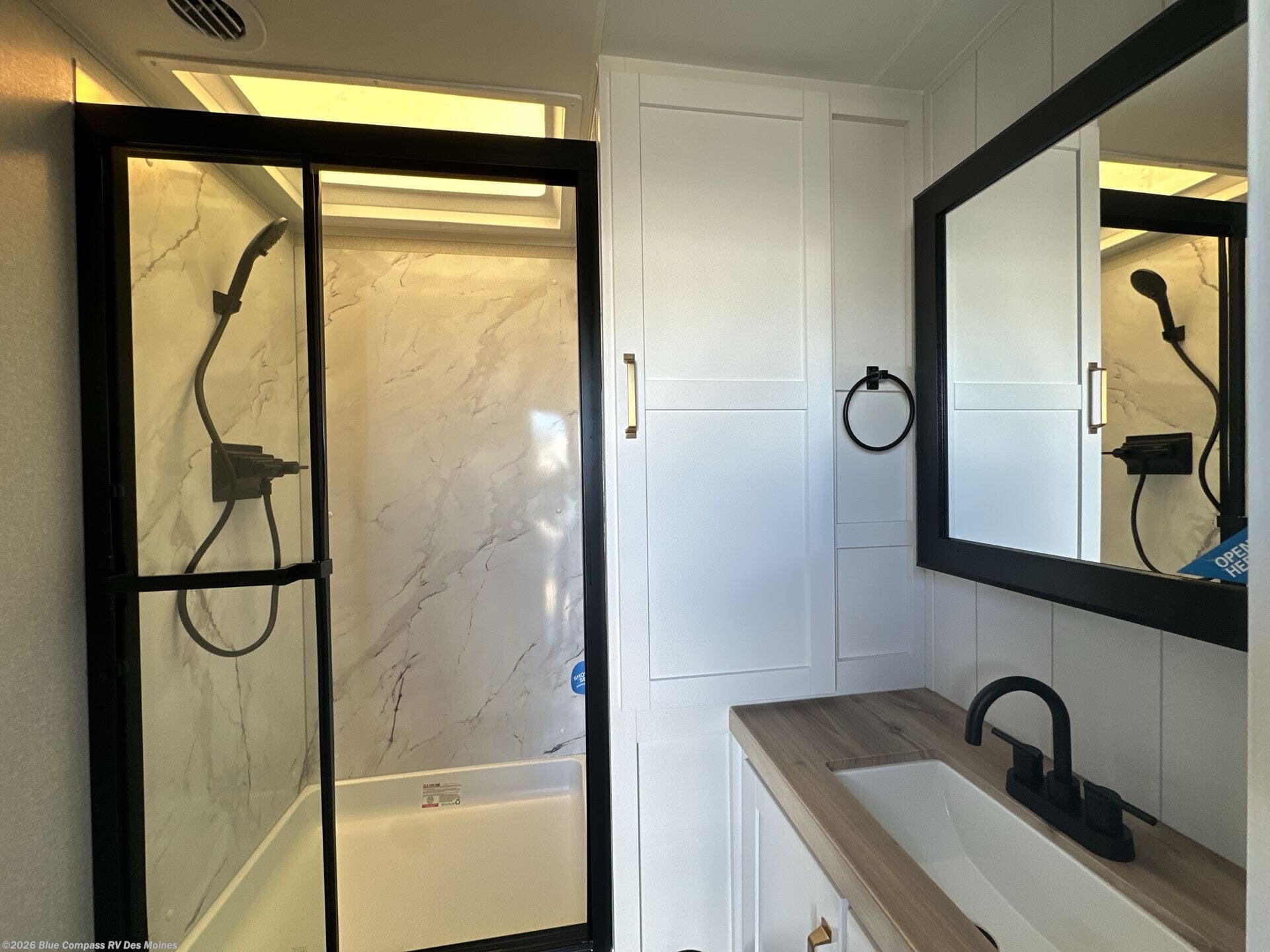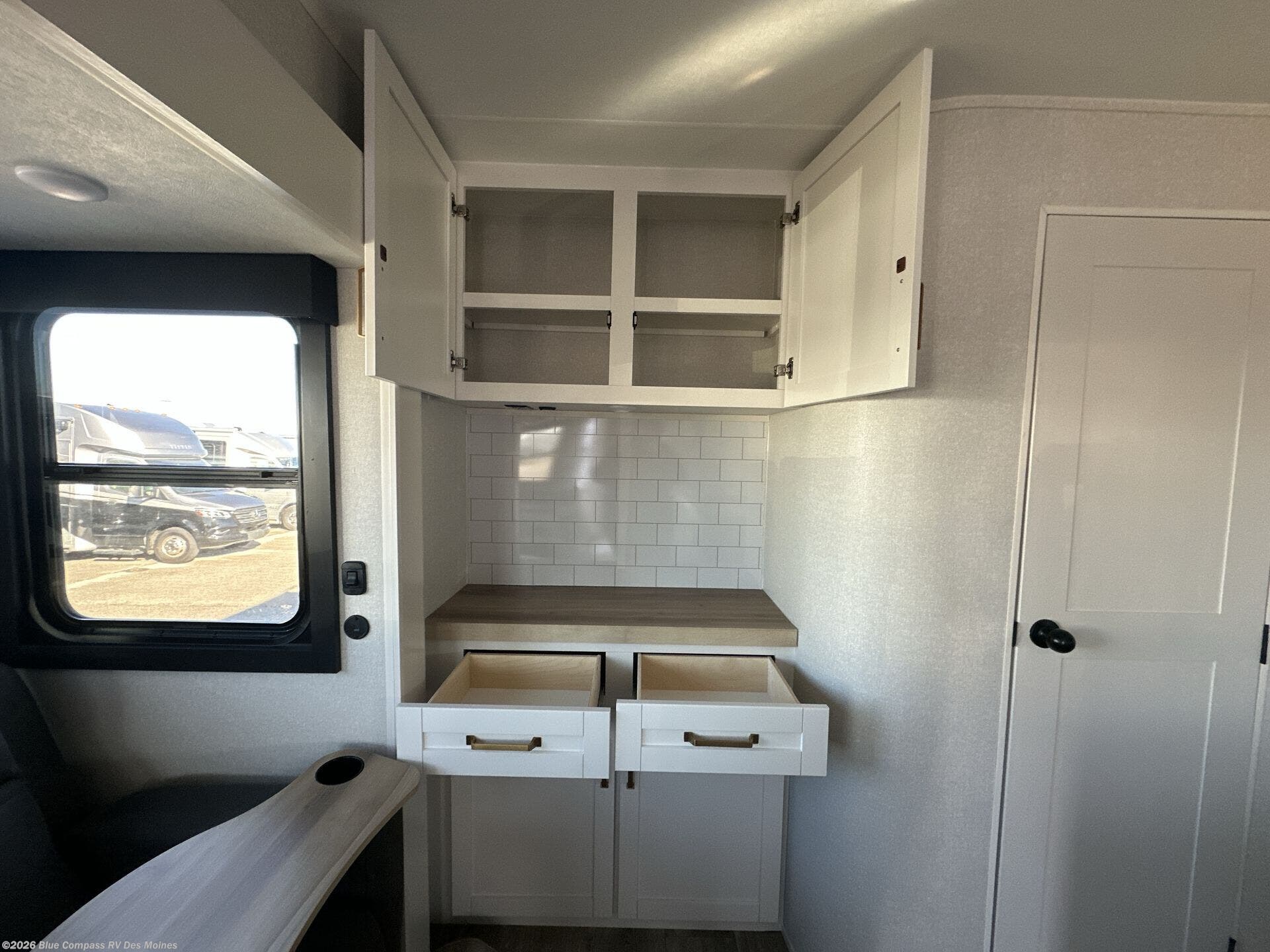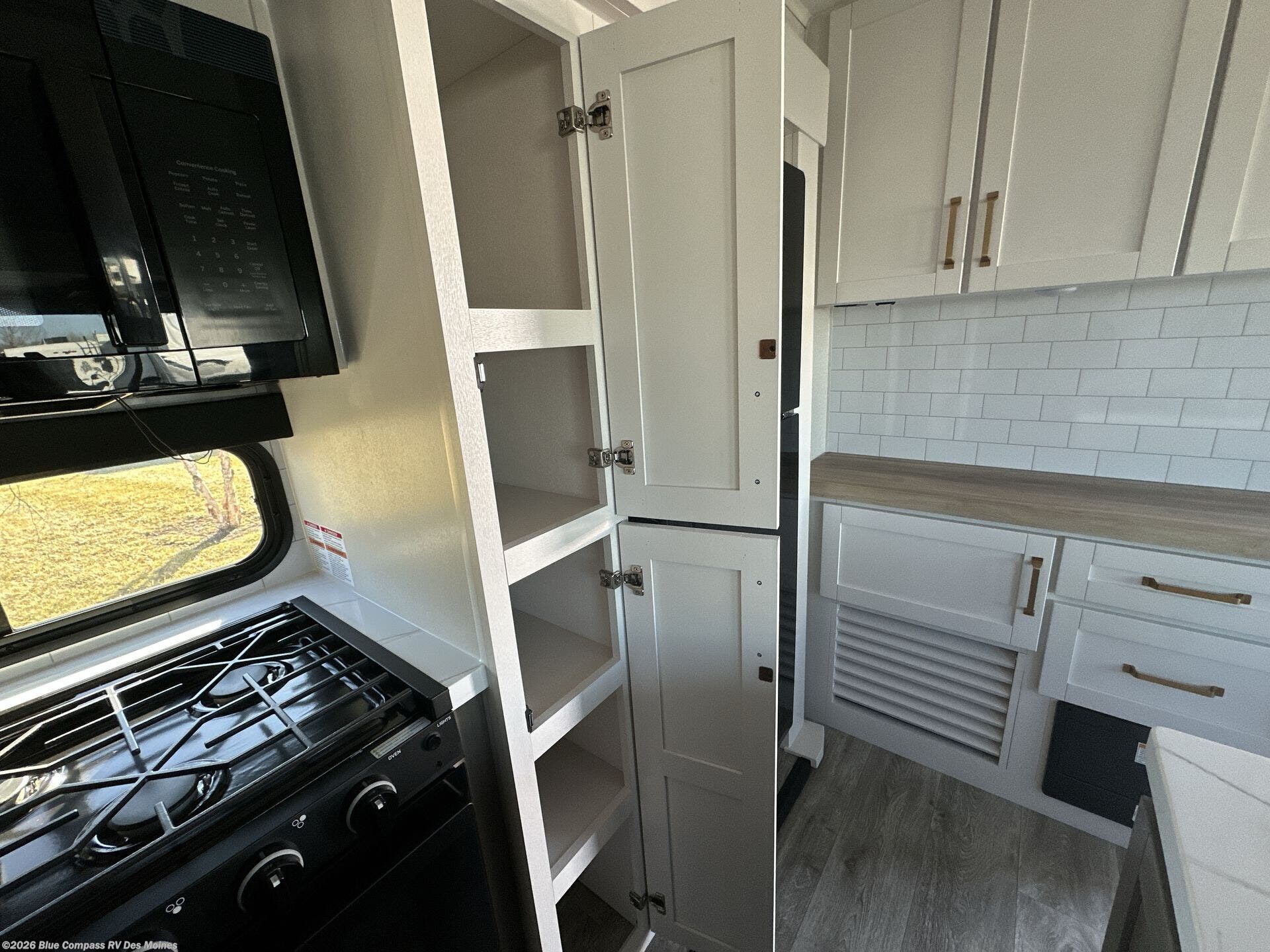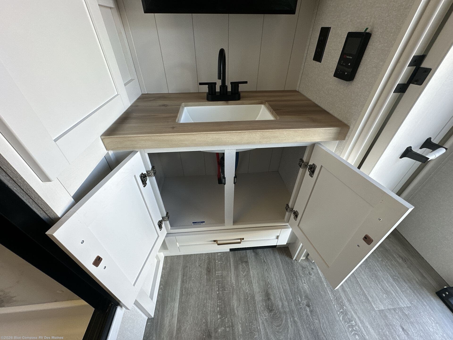 This travel trailer is perfect for your larger group or family! There is a rear private bunkhouse with two bunks, a tri-fold sofa, plus a slide out for more space. You will have the front private bedroom all to yourselves with a queen bed, and any other guests can sleep on the tri-fold sofa and booth dinette! There is also a wardrobe/linen closet with washer and dryer prep if you plan to add a washer and dyer for convenience. The chef can prepare their best meals with the kitchen island and will enjoy having two hutches to store the essentials. They could even cook at the outside kitchen to breathe in some fresh air and enjoy the beautiful scenery!