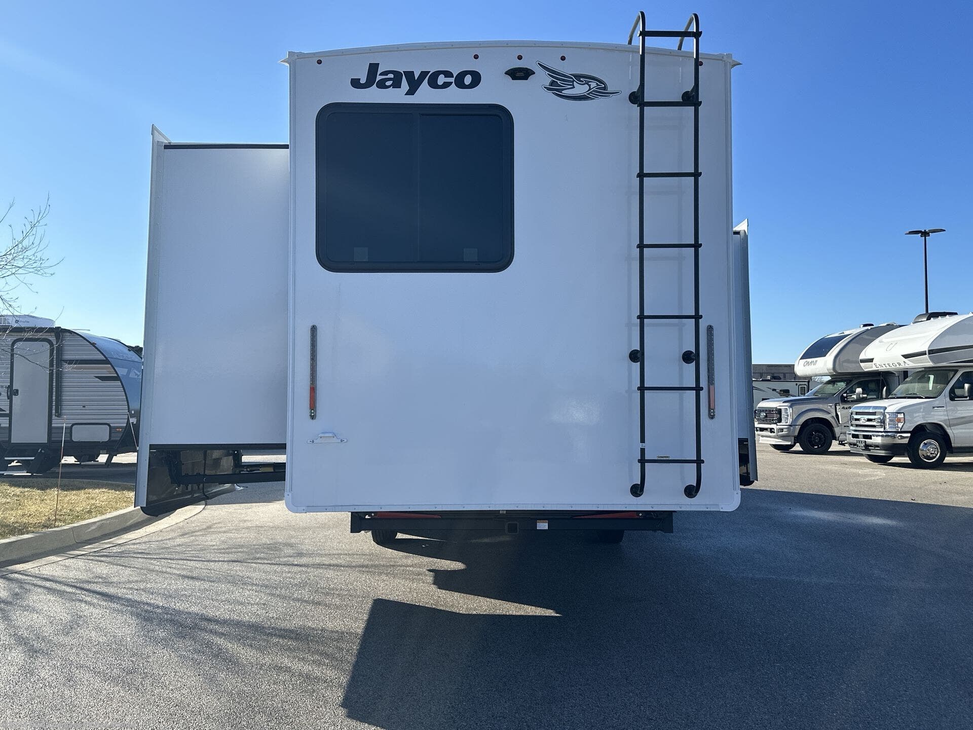 With any Eagle HT fifth wheel or travel trailer by Jayco you will enjoy a smooth drive thanks to the 4 Star Handling Package and MORryde CRE-3000 rubberized suspension. The Customer Value Package includes amenities that are sure to make camping easier than ever, like the 60K on-demand water heater, Keyed-Alike lock system, 15,000 BTU "Whisper Quiet" A/C, and more. Handcrafted door/drawer fronts will make your space feel more like home, along with residential vinyl flooring throughout, GE appliances, and blackout roller shades with reflective side throughout to keep the sun out when you want to sleep in. Each model also includes a NuVo H2O water treatment system with filters included, interior and exterior "Blue Sync" audio connect with MB Quart Sound for your TV and phone, and 100% no floor vents for added comfort and convenience!
