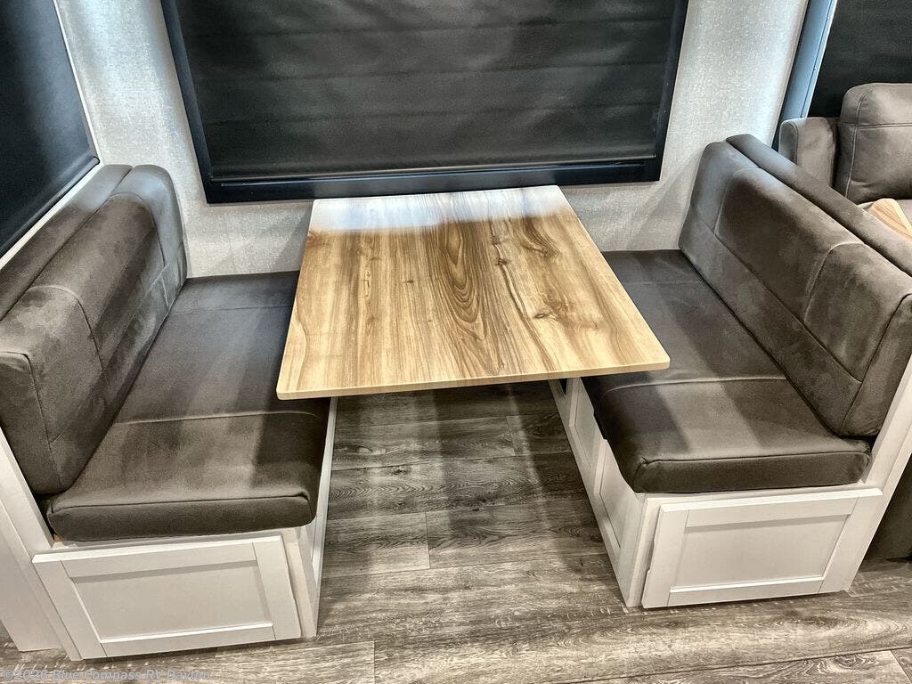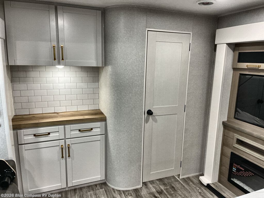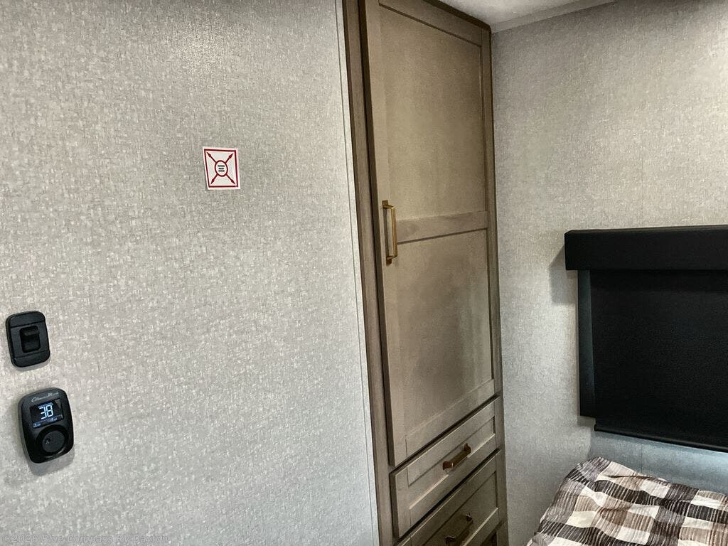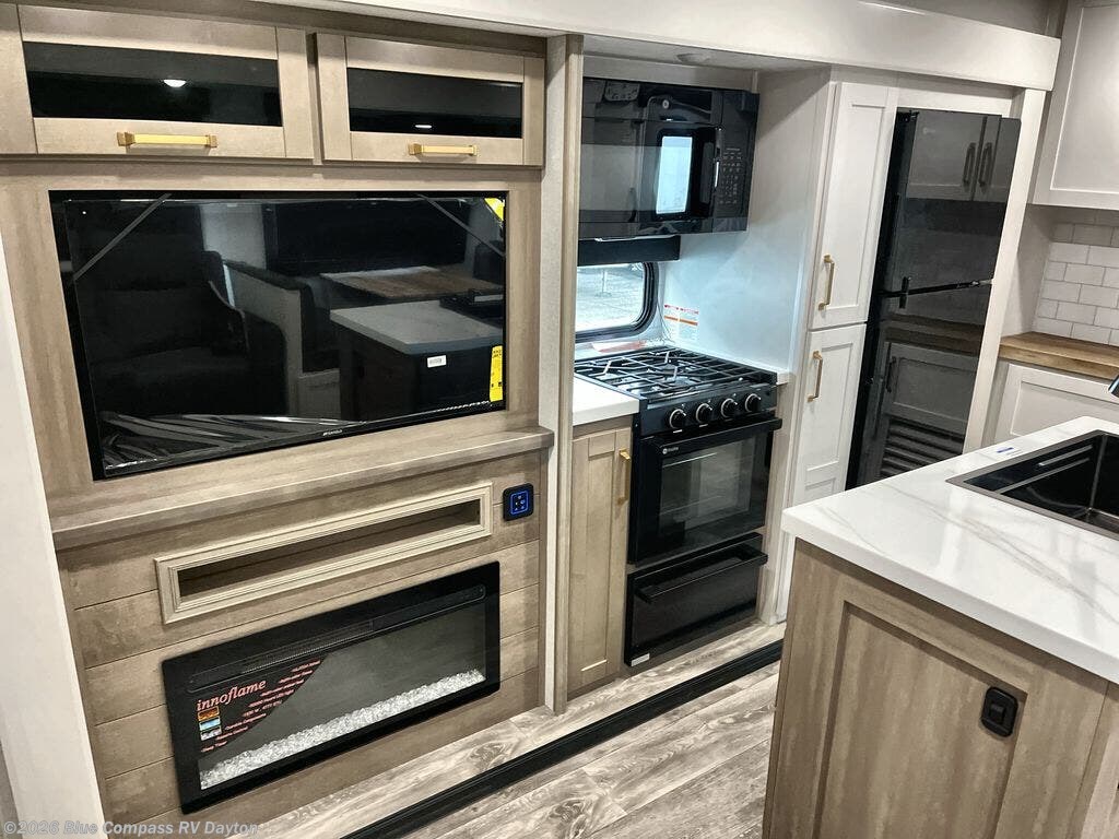This travel trailer is perfect for your larger group or family! There is a rear private bunkhouse with two bunks, a tri-fold sofa, plus a slide out for more space. You will have the front private bedroom all to yourselves with a queen bed, and any other guests can sleep on the tri-fold sofa and booth dinette! There is also a wardrobe/linen closet with washer and dryer prep if you plan to add a washer and dyer for convenience. The chef can prepare their best meals with the kitchen island and will enjoy having two hutches to store the essentials. They could even cook at the outside kitchen to breathe in some fresh air and enjoy the beautiful scenery!