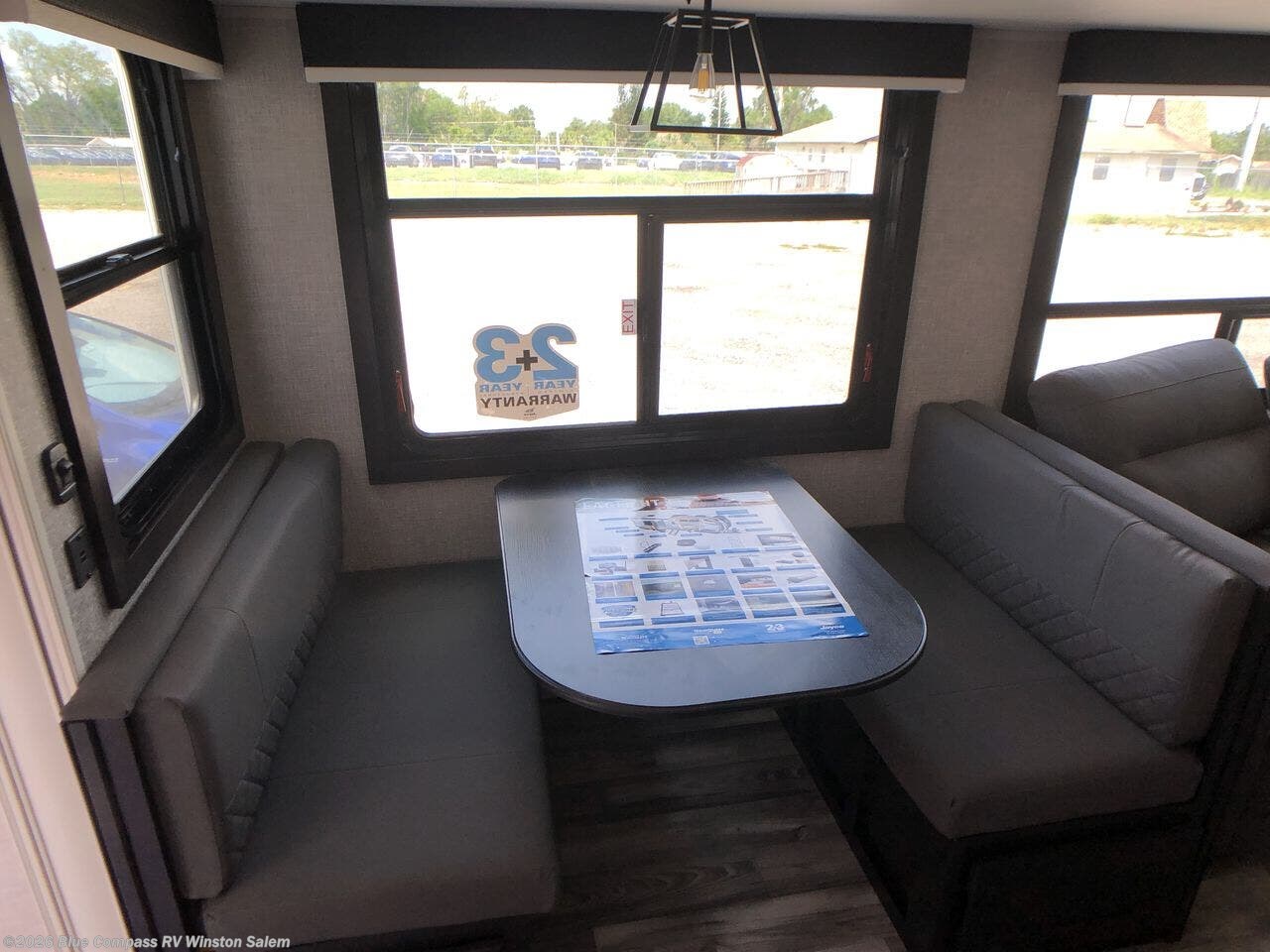This travel trailer is perfect for your larger group or family! There is a rear private bunkhouse with two bunks, a tri-fold sofa, plus a slide out for more space. You will have the front private bedroom all to yourselves with a queen bed, and any other guests can sleep on the tri-fold sofa and booth dinette! There is also a wardrobe/linen closet with washer and dryer prep if you plan to add a washer and dyer for convenience. The chef can prepare their best meals with the kitchen island and will enjoy having two hutches to store the essentials. They could even cook at the outside kitchen to breathe in some fresh air and enjoy the beautiful scenery!
