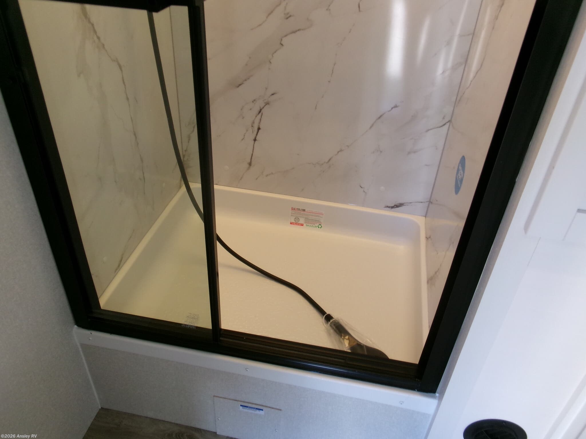 - Residential-style glass shower door