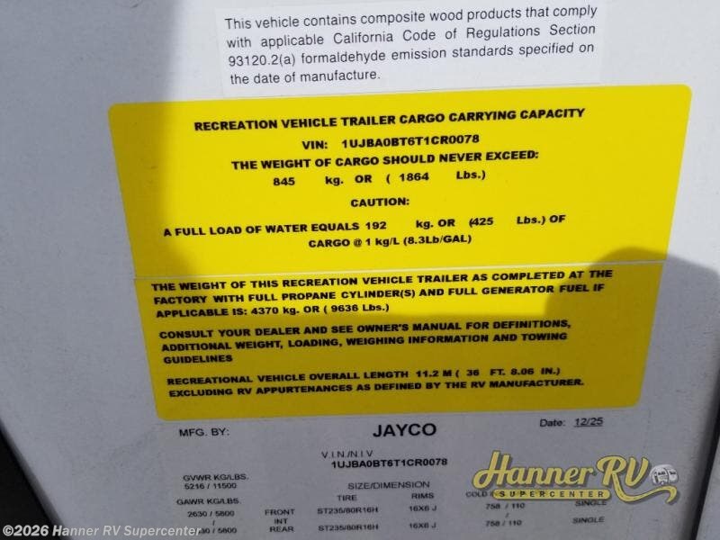 Request More Info on this 2026 Jayco Eagle HT 320MKTS Offered for sale by Hanner RV Supercenter