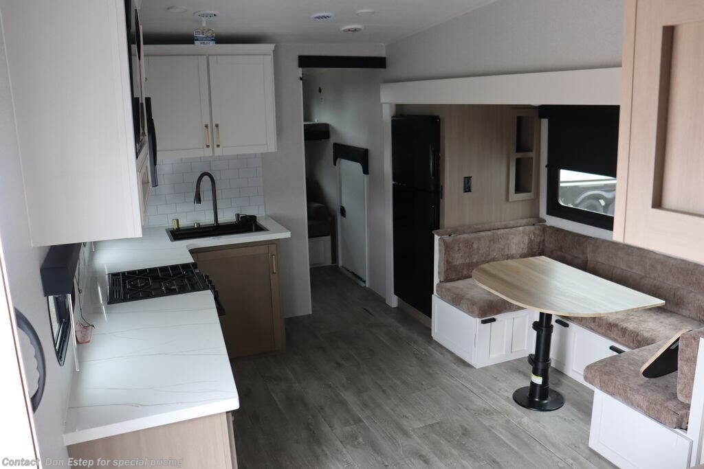 Step into the world of Fifth Wheel RVing with the Eagle HT Fifth Wheel, where high-end luxury meets effortless towability. Designed for explorers who want all of the comforts of home without needing a heavy-duty tow vehicle, this Fifth Wheel delivers spacious interiors, cutting-edge tech, and residential-style finishes—all wrapped in a sleek, road-ready design. Whether you're nestled among the pines, parked at a sun-drenched vineyard, or chasing sunsets across the plains, the Eagle HT Fifth Wheel brings home and adventure together like never before. It’s more than just an RV—it’s your cabin in the mountains, your beachside retreat, your everyday escape. Wherever the road leads, go there with your Jayco Eagle HT.