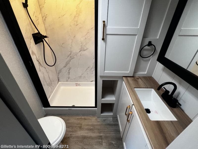 With any Eagle SLE fifth wheel by Jayco, you will enjoy a lighter tow weight, high-end finishes, and the same quality construction you've come to expect from Jayco! There is an Alpha Ply TPO roof membrane, a fully enclosed and heated underbelly, plus Stronghold VBL walls for added durability. There is also a rear 2" towing receiver outside, along with metal slam latch baggage doors, MORryde Step Above entry steps, and a Winegard Air 360 antenna with router prep if you want to stay connected as you camp. Once inside you'll enjoy the handcrafted and glazed door/drawer fronts, blackout pleated shades throughout, and residential vinyl flooring throughout with no carpet for an easier clean. The on-demand water heater, 30K BTU furnace, and 15K BTU "Whisper Quiet" A/C will ensure your comfort year around, and the optional Overland 1 Solar Package can be added if you need off-grid capabilities!