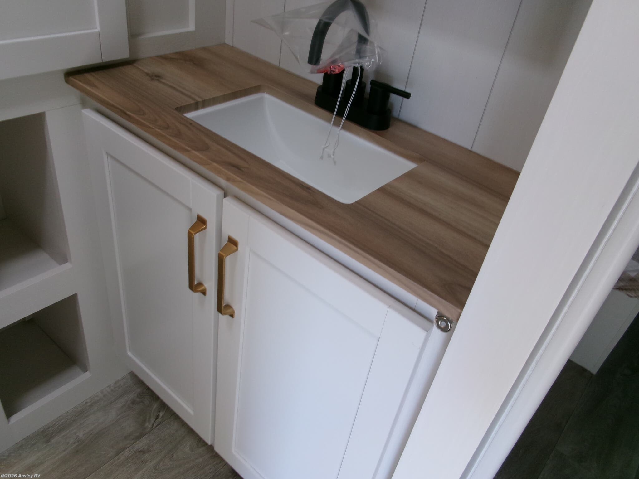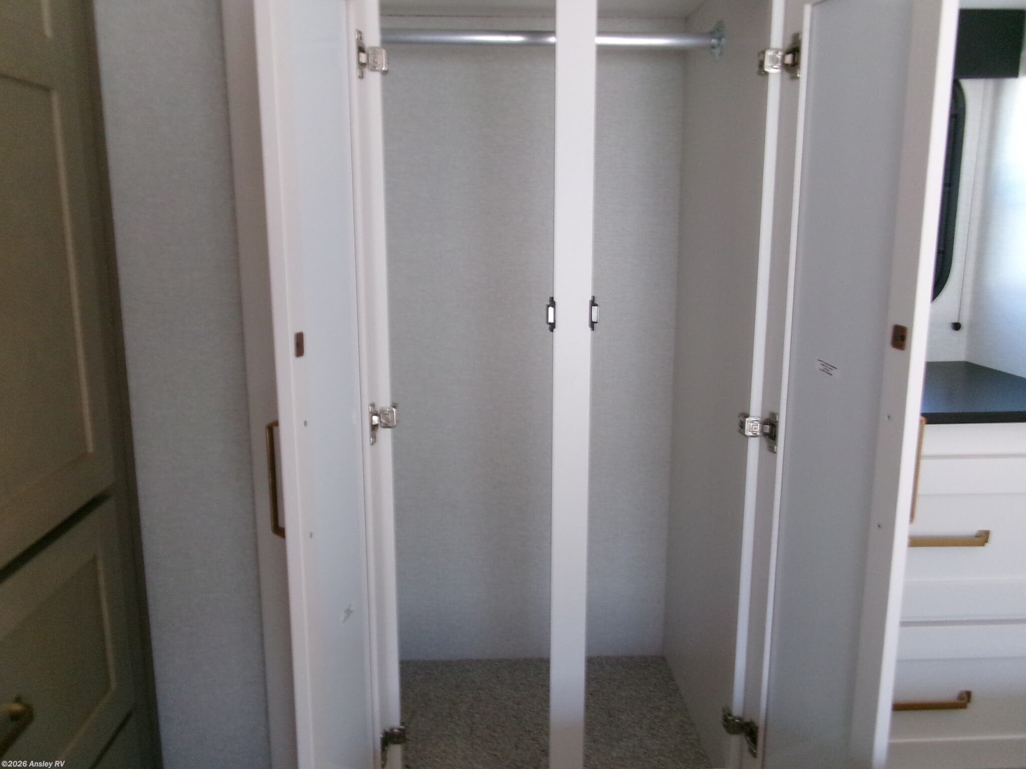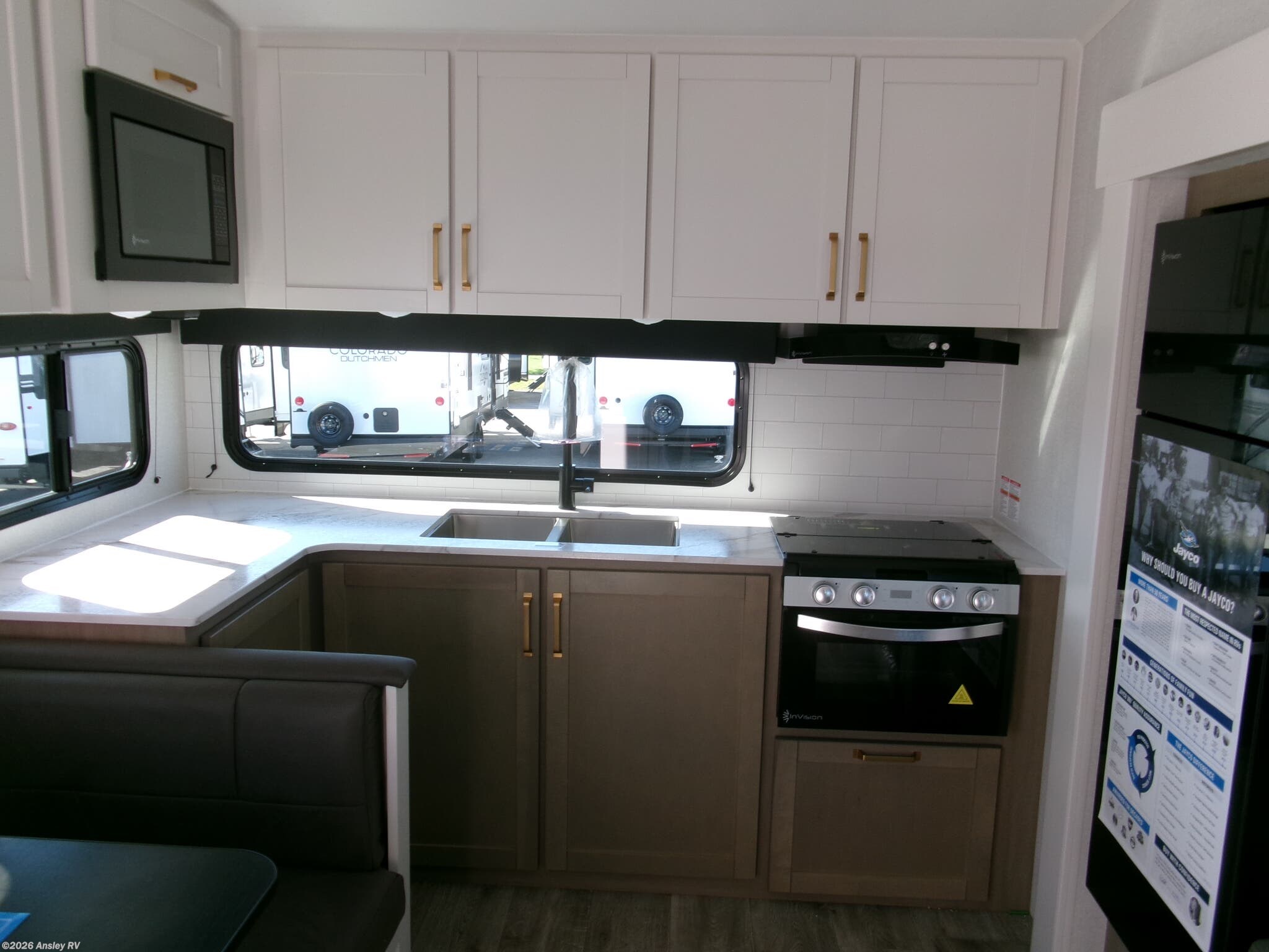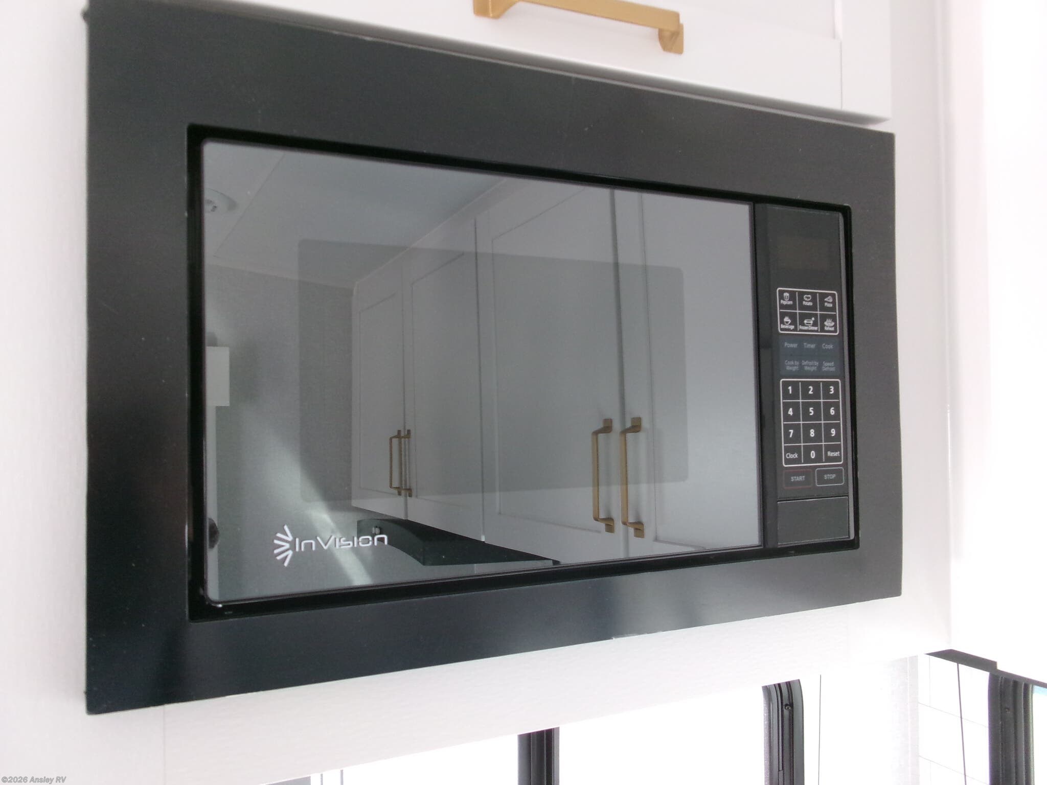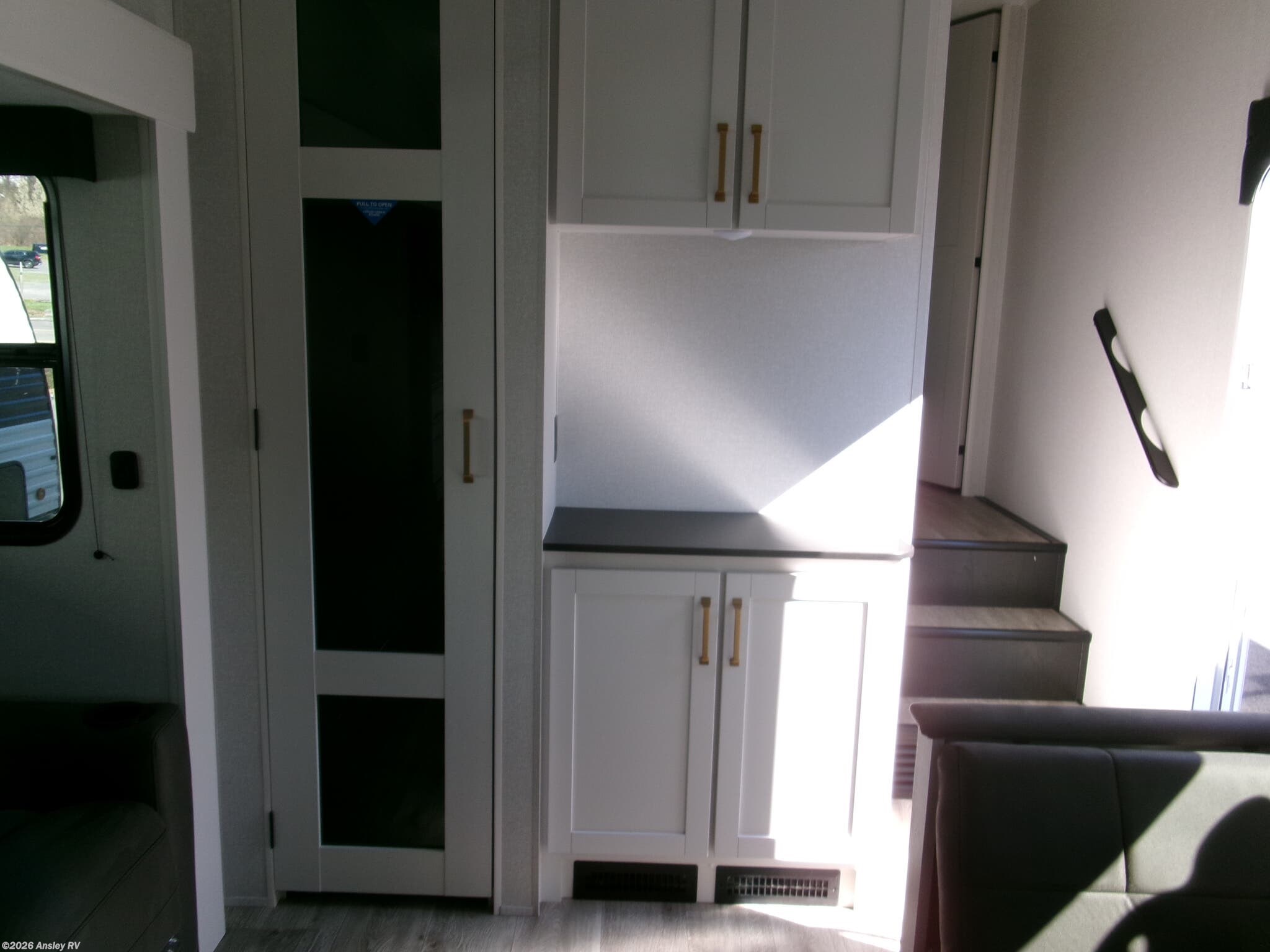 Step inside, and you’ll be greeted by an open-concept living space, complete with residential-style finishes and thoughtful details that elevate your RV experience. The Whisper Quiet 15K BTU A/C system ensures a peaceful retreat, while the HELIX Cooling System™ dual-duct design keeps temperatures steady, even in the summer heat. Relax by the optional LED fireplace with a 5,000 BTU space heater, perfect for cozying up on chilly nights. The deep stainless-steel sink with a pull-out sprayer, spacious countertops, and full-extension 75-lb. drawer guides make meal prep effortless. The tri-fold hide-a-bed sofa with a memory foam sleep surface (select models) ensures every guest sleeps in comfort. With USB-C charging ports, a 40” 4K Ultra LED HD Smart TV, and Bluetooth audio connectivity, your entertainment is always at your fingertips.